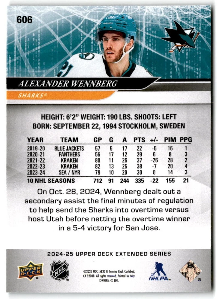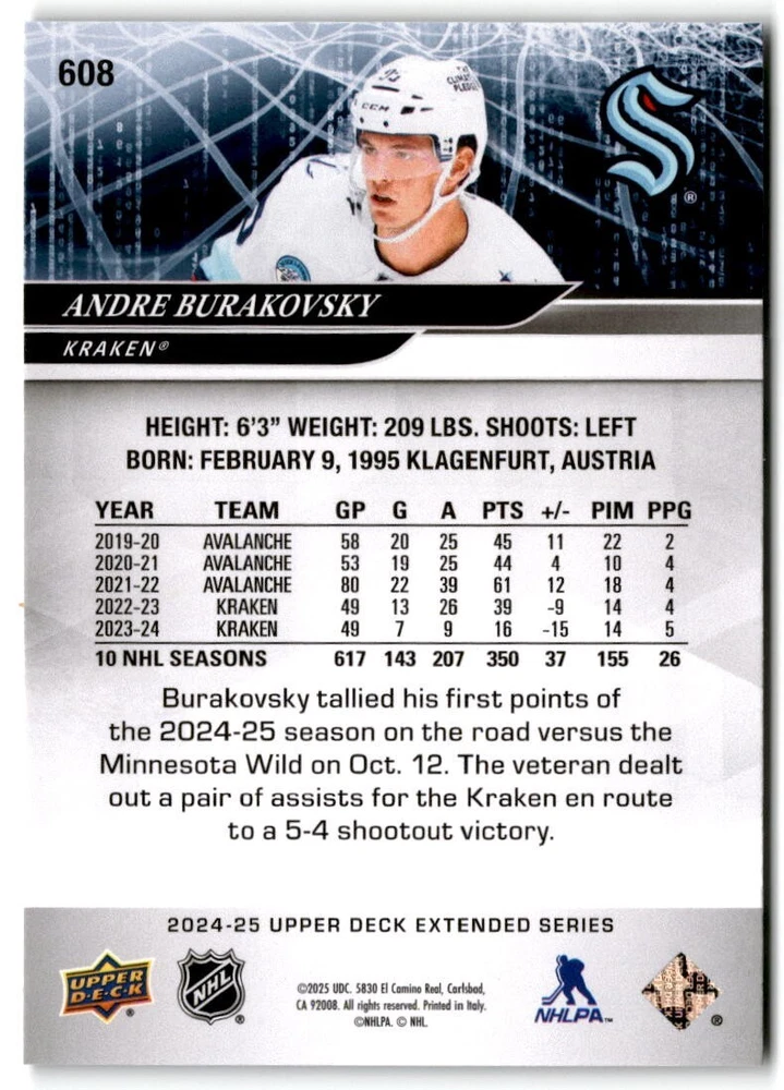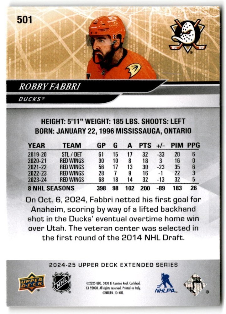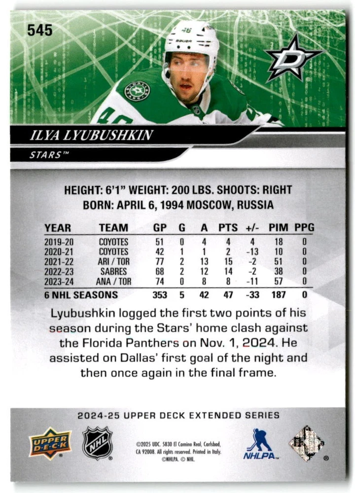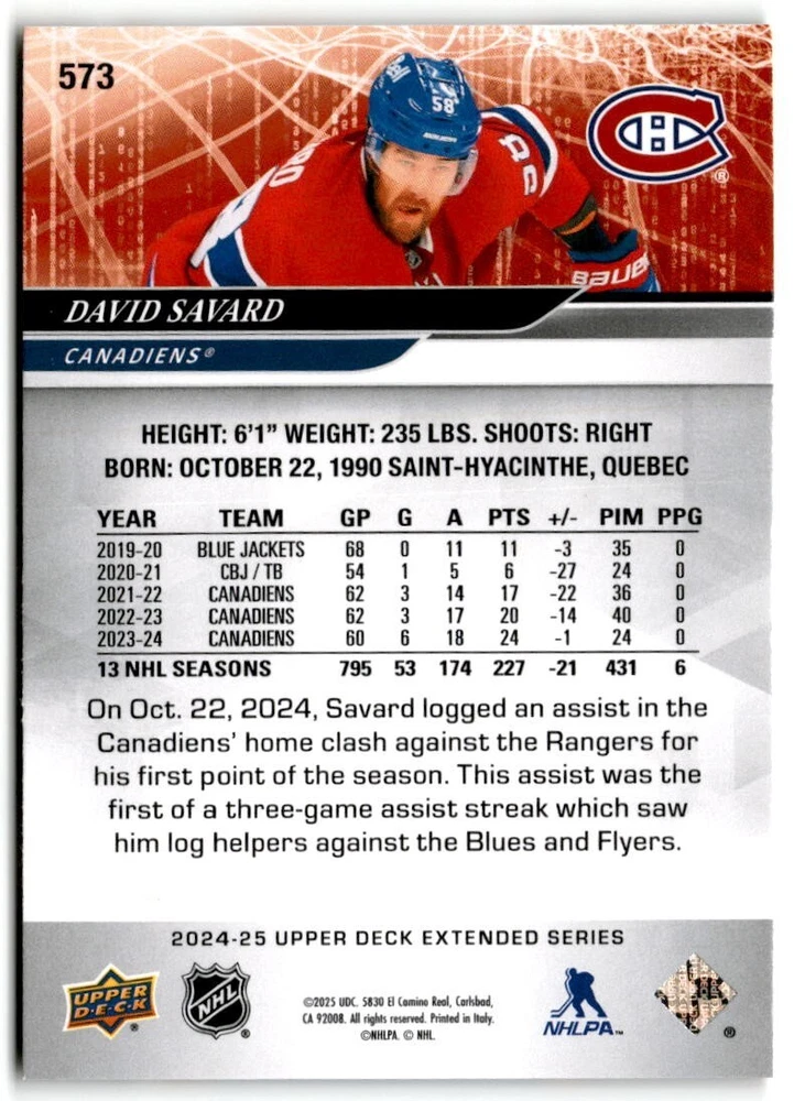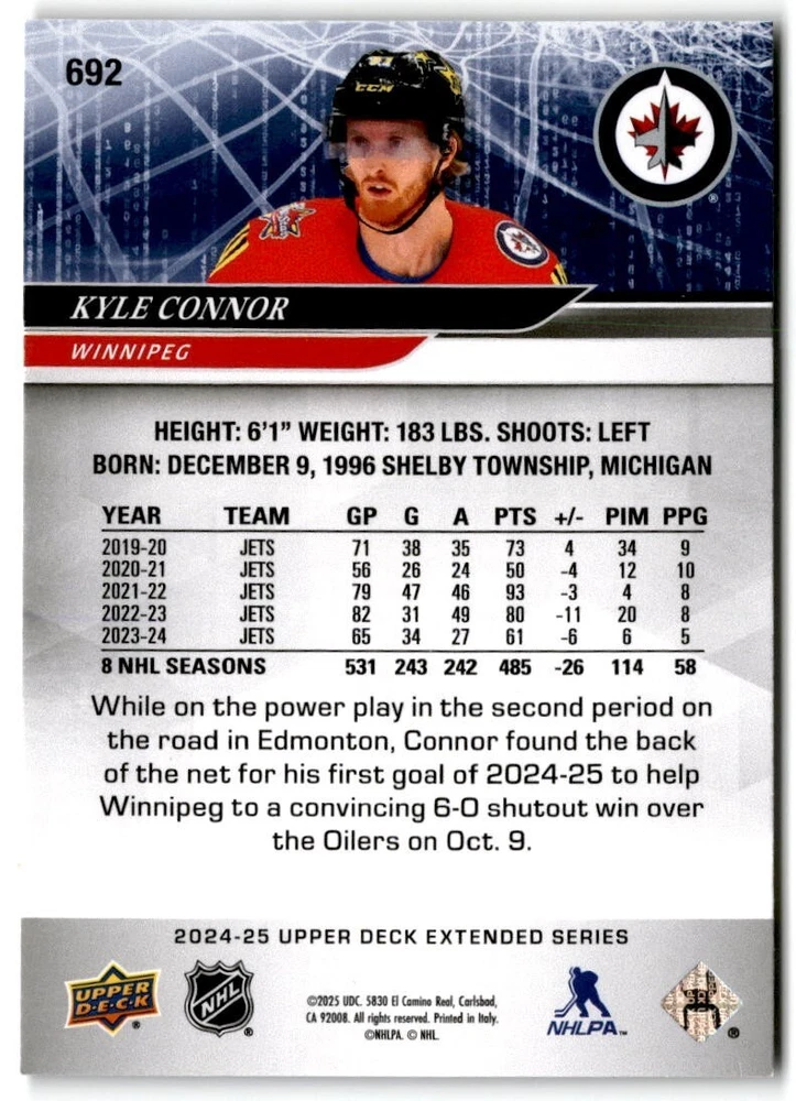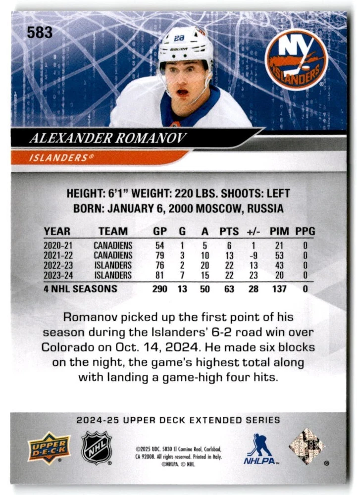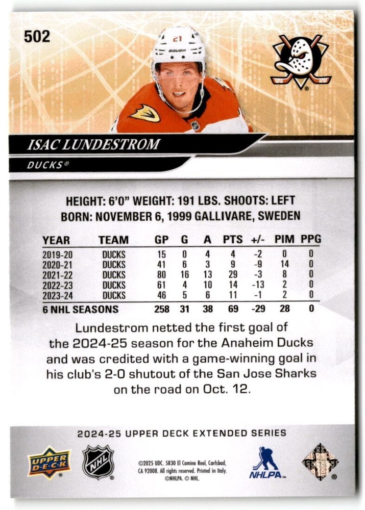 2024-25 Upper Deck Extended Hockey Base #501-700 Complete Your Set You Pick Card The cards are pictures of one of that specific card we are selling you may get that one or another one. Please pick from drop down menu for the cards you would like. All cards came directly from packs I opened. Please message me with any questions. Shipping - Card(s) will be shipped within three business days (Thursday night orders will be done Mon/Tue and in Tue/Wed mail) and orders will be shipped in a penny sleeve or case. EXTRA SPECIAL - This Listing Only. FREE SHIPPING on this listing using eBay standard envelope unlimited cards here FREE shipping! Purchase unlimited cards in this listing and your shipping is FREE. If your total on the cards is $25 or more pre-tax they will automatically be upgraded to a bubble mailer. If you would like shipped in a bubble mailer and your total is less than $25 in cards please choose the USPS First Class shipping for $4.99. International Orders are more for shipping. Just as a reminder if you are purchasing cards in a special deal (I do change them from time to time) you must purchase all the cards at one time via the cart to qualify for the special. * If an item is not received and it does not show delivered. You must submit an item not received through eBay for each card of that order. If it shows delivered and you do not see it in your mailbox many times with eBay standard delivery it can arrive the next day. If you do not see it then please check around to see if neighbors received the card or if it might have fallen to the ground possibly check with your postmaster. Refunds are not given on delivered mail.