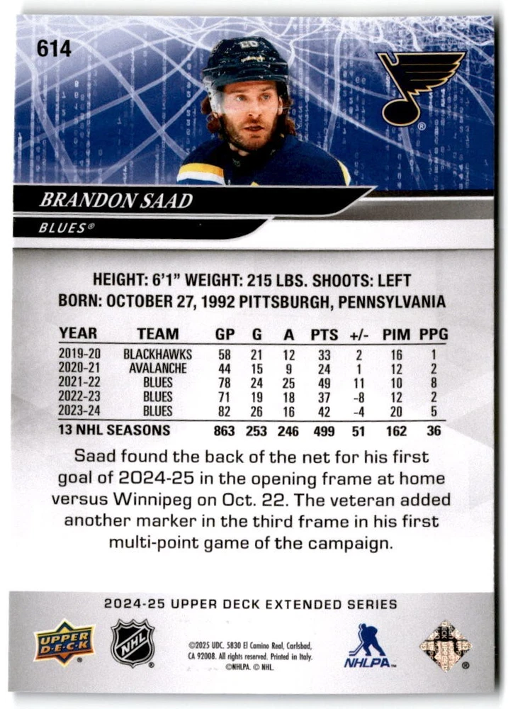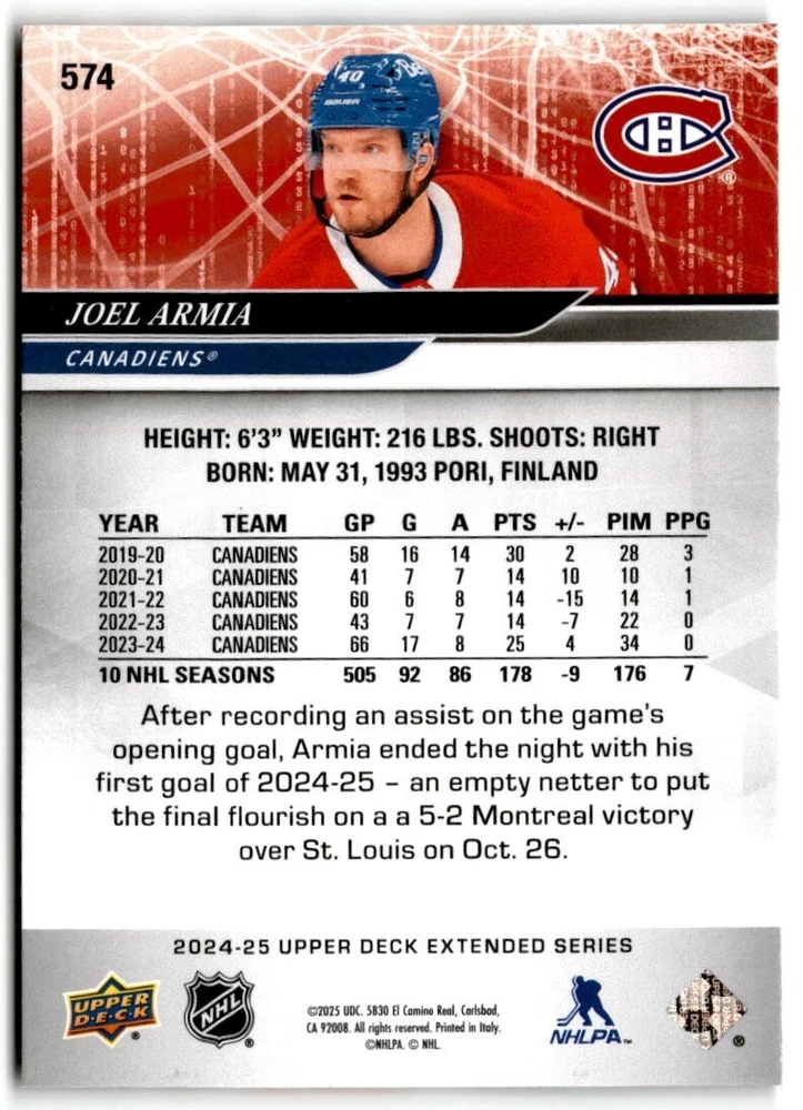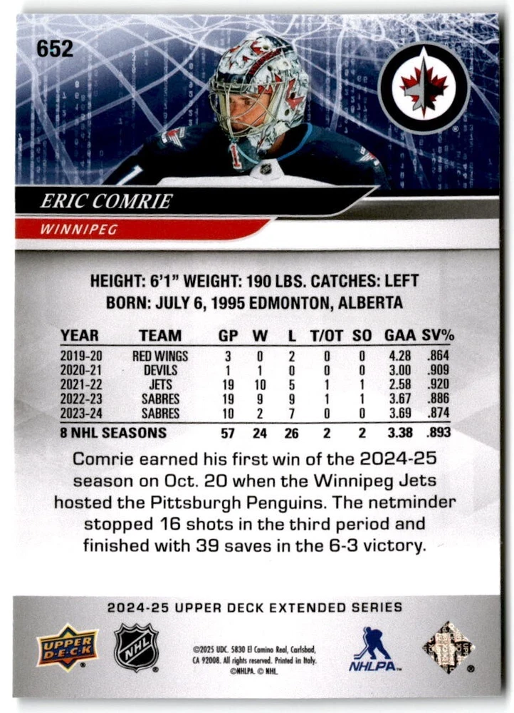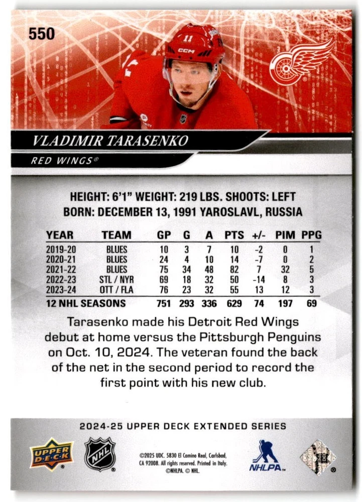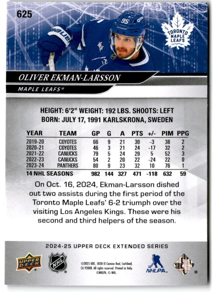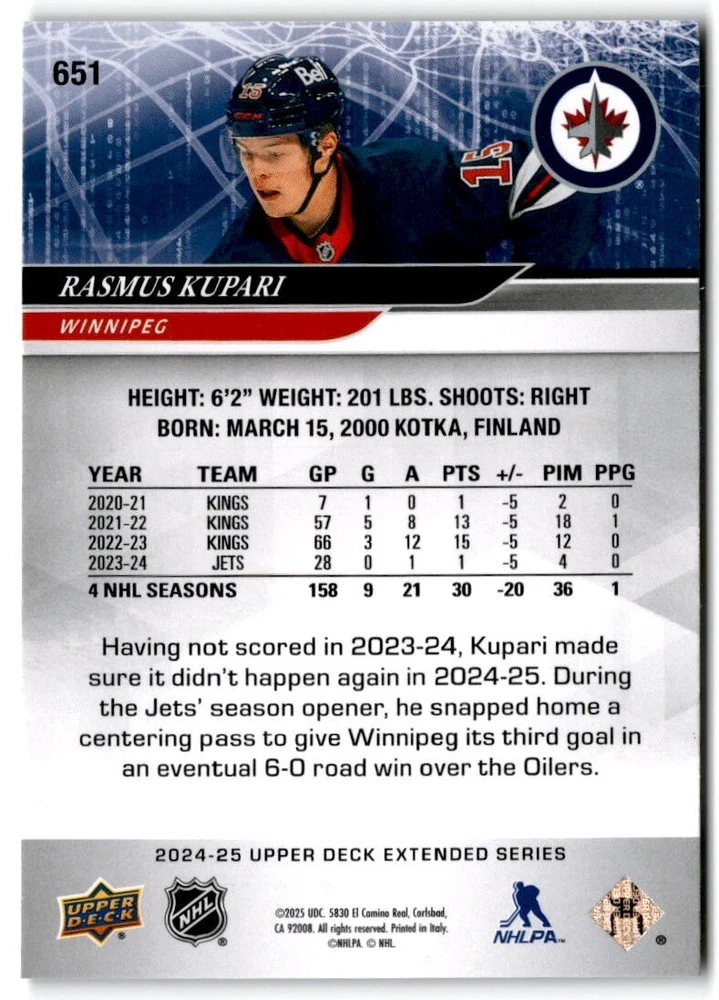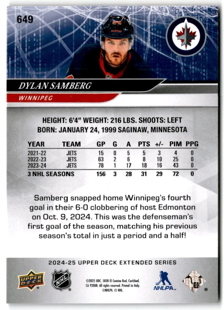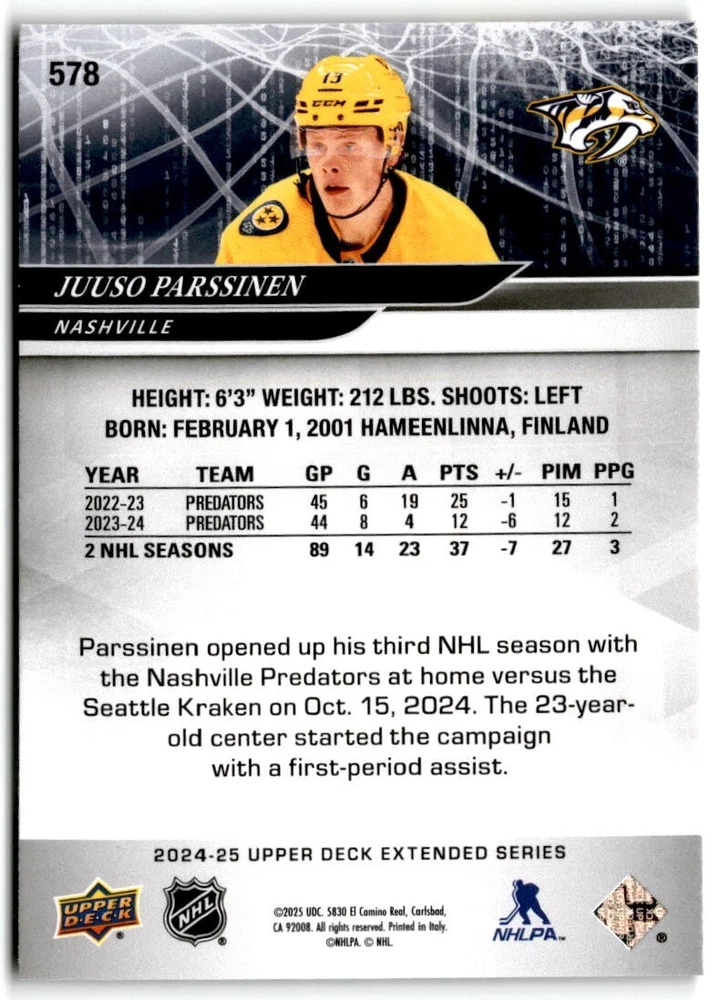 2024-25 Upper Deck Extended Hockey Base #501-700 Complete Your Set You Pick Card The cards are pictures of one of that specific card we are selling you may get that one or another one. Please pick from drop down menu for the cards you would like. All cards came directly from packs I opened. Please message me with any questions. Shipping - Card(s) will be shipped within three business days (Thursday night orders will be done Mon/Tue and in Tue/Wed mail) and orders will be shipped in a penny sleeve or case. EXTRA SPECIAL - This Listing Only. FREE SHIPPING on this listing using eBay standard envelope unlimited cards here FREE shipping! Purchase unlimited cards in this listing and your shipping is FREE. If your total on the cards is $25 or more pre-tax they will automatically be upgraded to a bubble mailer. If you would like shipped in a bubble mailer and your total is less than $25 in cards please choose the USPS First Class shipping for $4.99. International Orders are more for shipping. Just as a reminder if you are purchasing cards in a special deal (I do change them from time to time) you must purchase all the cards at one time via the cart to qualify for the special. * If an item is not received and it does not show delivered. You must submit an item not received through eBay for each card of that order. If it shows delivered and you do not see it in your mailbox many times with eBay standard delivery it can arrive the next day. If you do not see it then please check around to see if neighbors received the card or if it might have fallen to the ground possibly check with your postmaster. Refunds are not given on delivered mail.