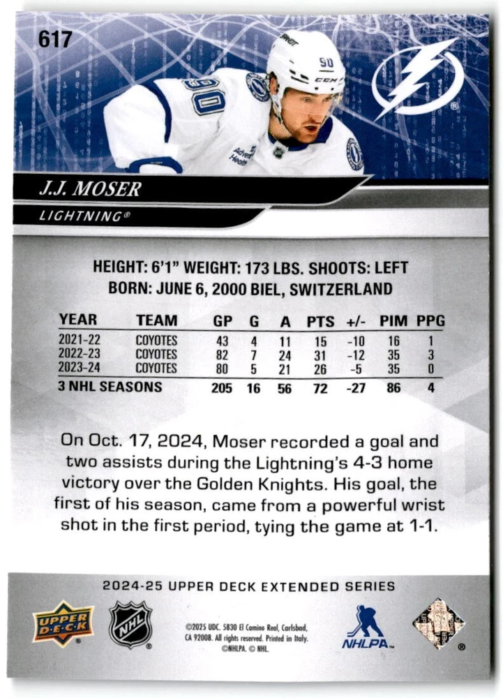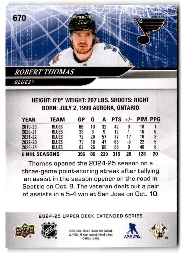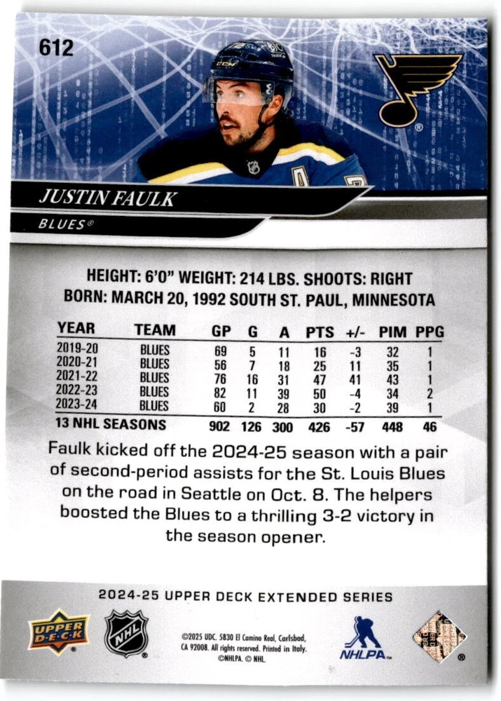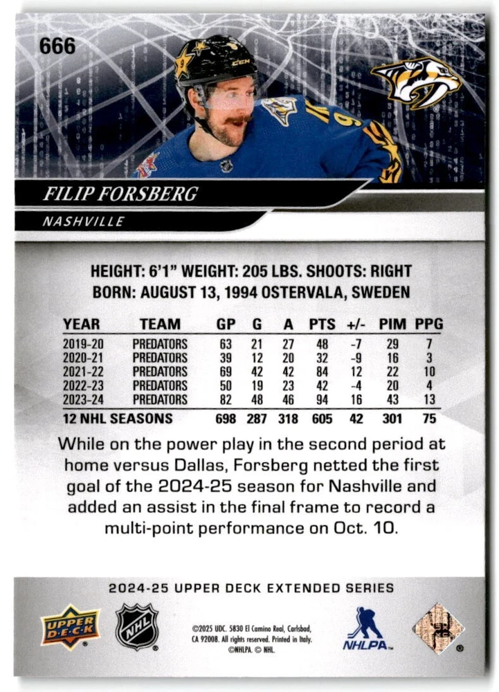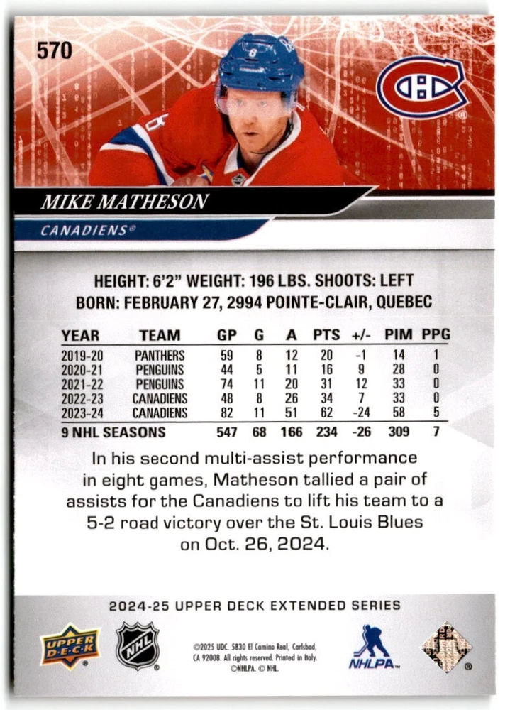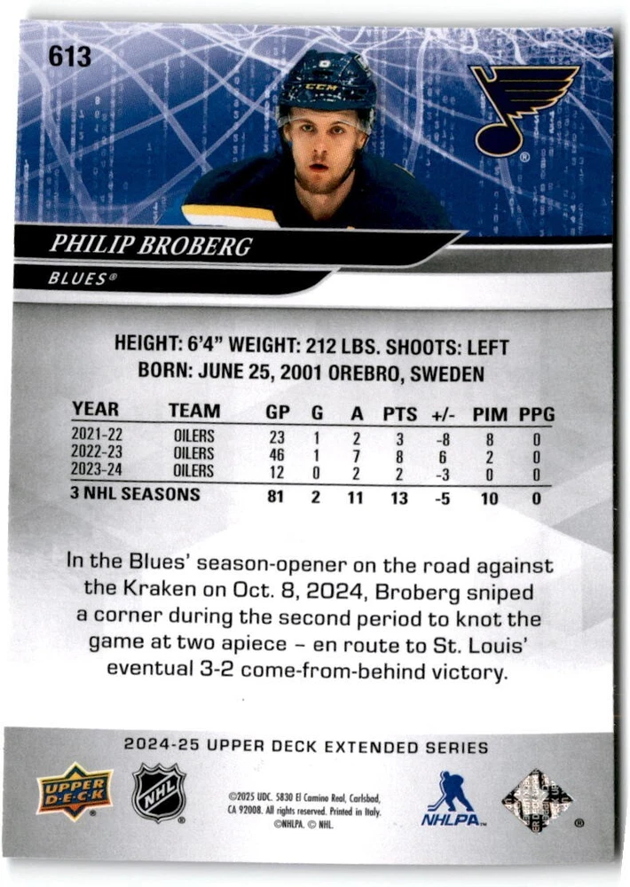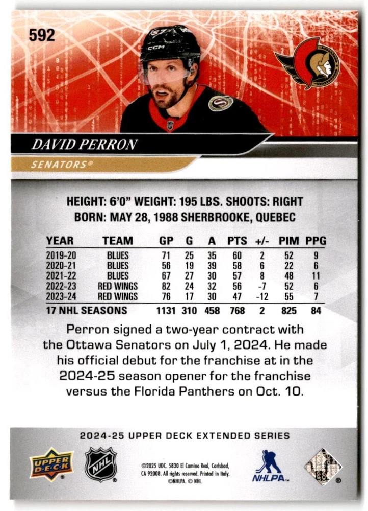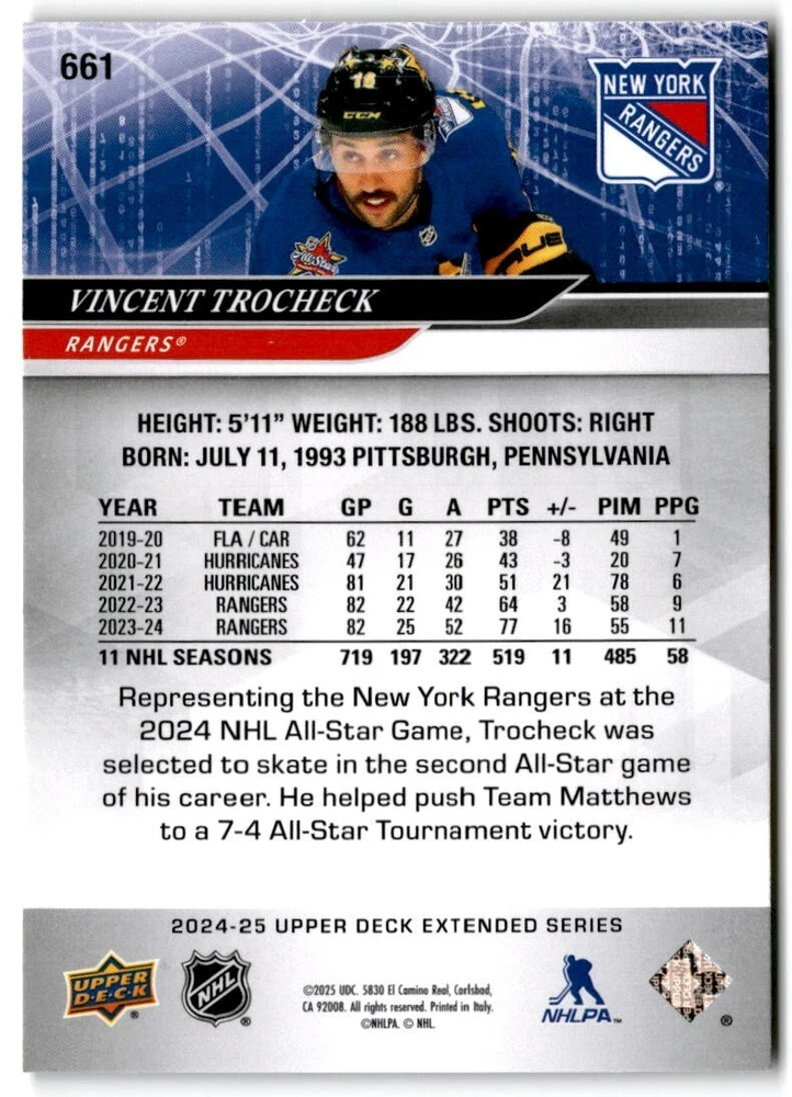 2024-25 Upper Deck Extended Hockey Base #501-700 Complete Your Set You Pick Card The cards are pictures of one of that specific card we are selling you may get that one or another one. Please pick from drop down menu for the cards you would like. All cards came directly from packs I opened. Please message me with any questions. Shipping - Card(s) will be shipped within three business days (Thursday night orders will be done Mon/Tue and in Tue/Wed mail) and orders will be shipped in a penny sleeve or case. EXTRA SPECIAL - This Listing Only. FREE SHIPPING on this listing using eBay standard envelope unlimited cards here FREE shipping! Purchase unlimited cards in this listing and your shipping is FREE. If your total on the cards is $25 or more pre-tax they will automatically be upgraded to a bubble mailer. If you would like shipped in a bubble mailer and your total is less than $25 in cards please choose the USPS First Class shipping for $4.99. International Orders are more for shipping. Just as a reminder if you are purchasing cards in a special deal (I do change them from time to time) you must purchase all the cards at one time via the cart to qualify for the special. * If an item is not received and it does not show delivered. You must submit an item not received through eBay for each card of that order. If it shows delivered and you do not see it in your mailbox many times with eBay standard delivery it can arrive the next day. If you do not see it then please check around to see if neighbors received the card or if it might have fallen to the ground possibly check with your postmaster. Refunds are not given on delivered mail.
