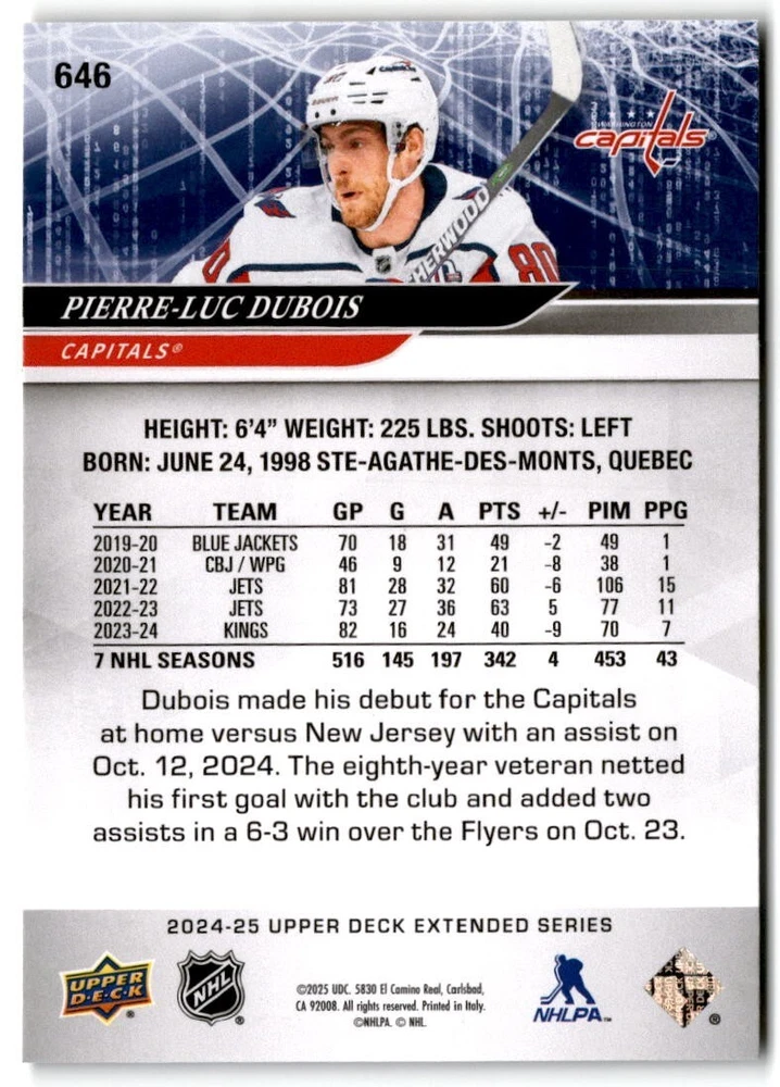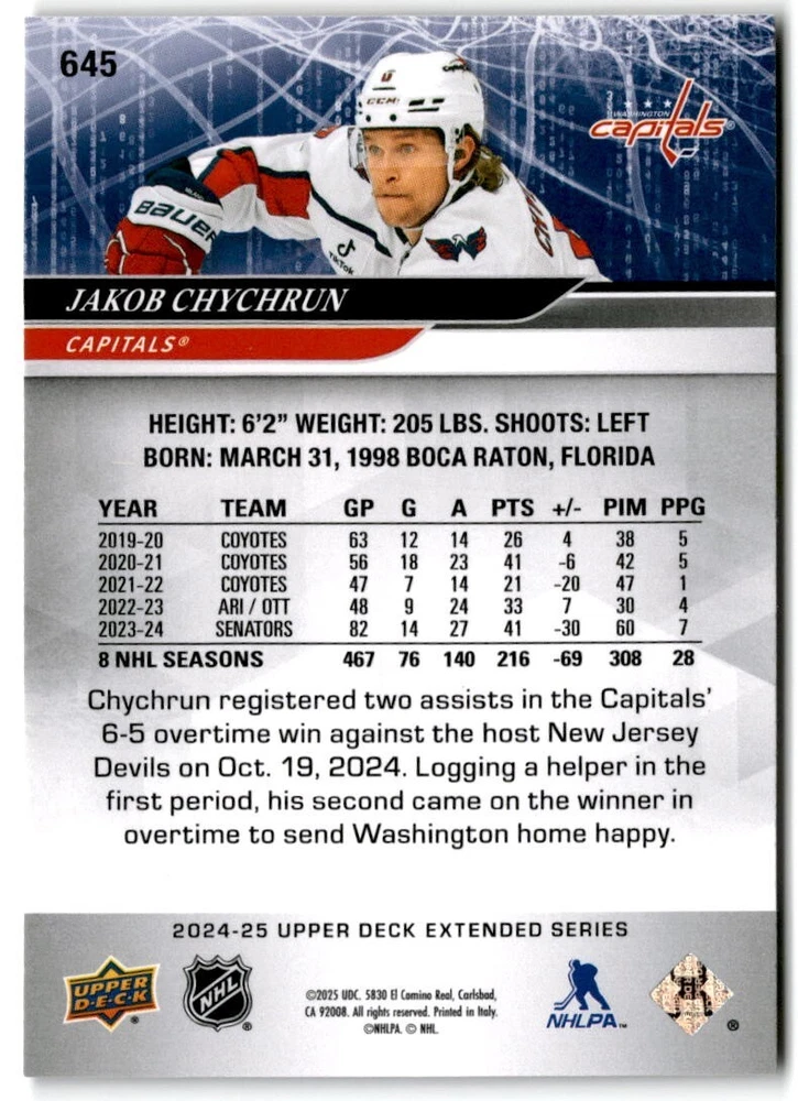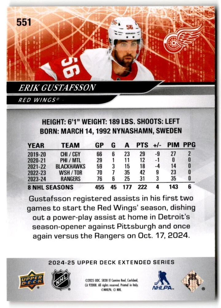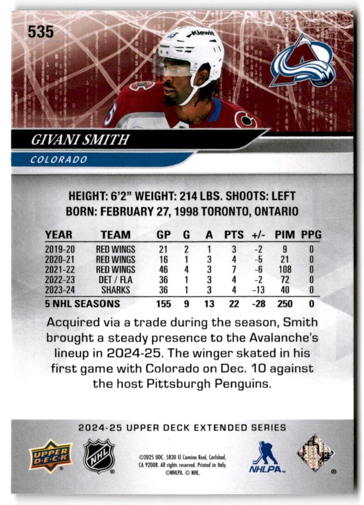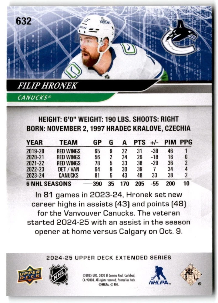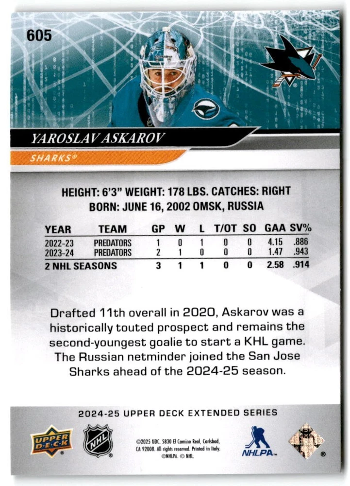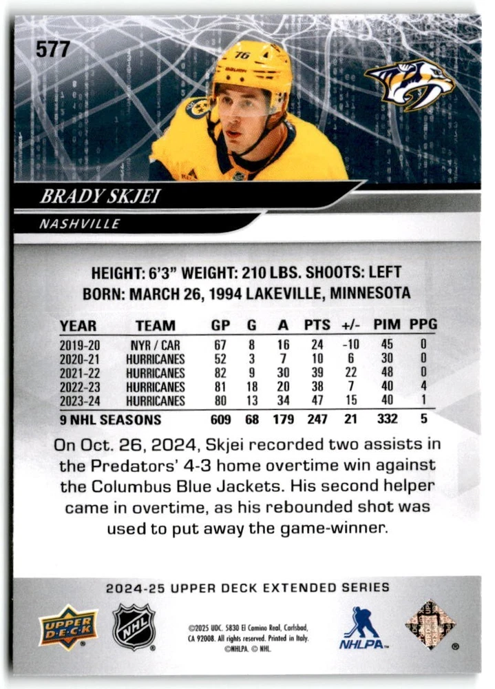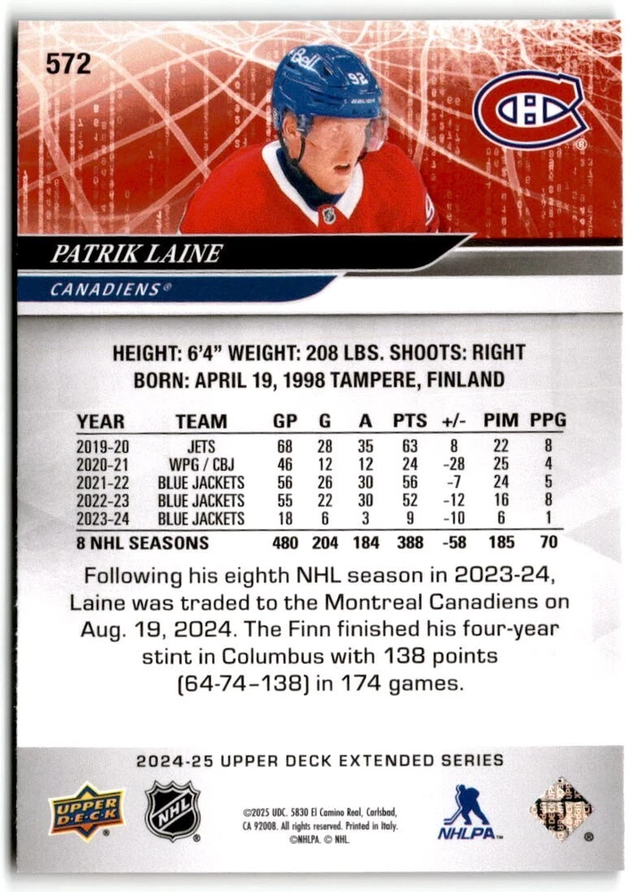 2024-25 Upper Deck Extended Hockey Base #501-700 Complete Your Set You Pick Card The cards are pictures of one of that specific card we are selling you may get that one or another one. Please pick from drop down menu for the cards you would like. All cards came directly from packs I opened. Please message me with any questions. Shipping - Card(s) will be shipped within three business days (Thursday night orders will be done Mon/Tue and in Tue/Wed mail) and orders will be shipped in a penny sleeve or case. EXTRA SPECIAL - This Listing Only. FREE SHIPPING on this listing using eBay standard envelope unlimited cards here FREE shipping! Purchase unlimited cards in this listing and your shipping is FREE. If your total on the cards is $25 or more pre-tax they will automatically be upgraded to a bubble mailer. If you would like shipped in a bubble mailer and your total is less than $25 in cards please choose the USPS First Class shipping for $4.99. International Orders are more for shipping. Just as a reminder if you are purchasing cards in a special deal (I do change them from time to time) you must purchase all the cards at one time via the cart to qualify for the special. * If an item is not received and it does not show delivered. You must submit an item not received through eBay for each card of that order. If it shows delivered and you do not see it in your mailbox many times with eBay standard delivery it can arrive the next day. If you do not see it then please check around to see if neighbors received the card or if it might have fallen to the ground possibly check with your postmaster. Refunds are not given on delivered mail.