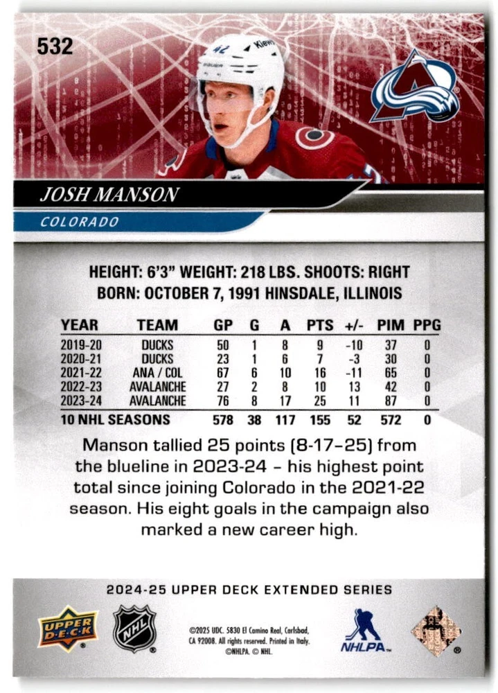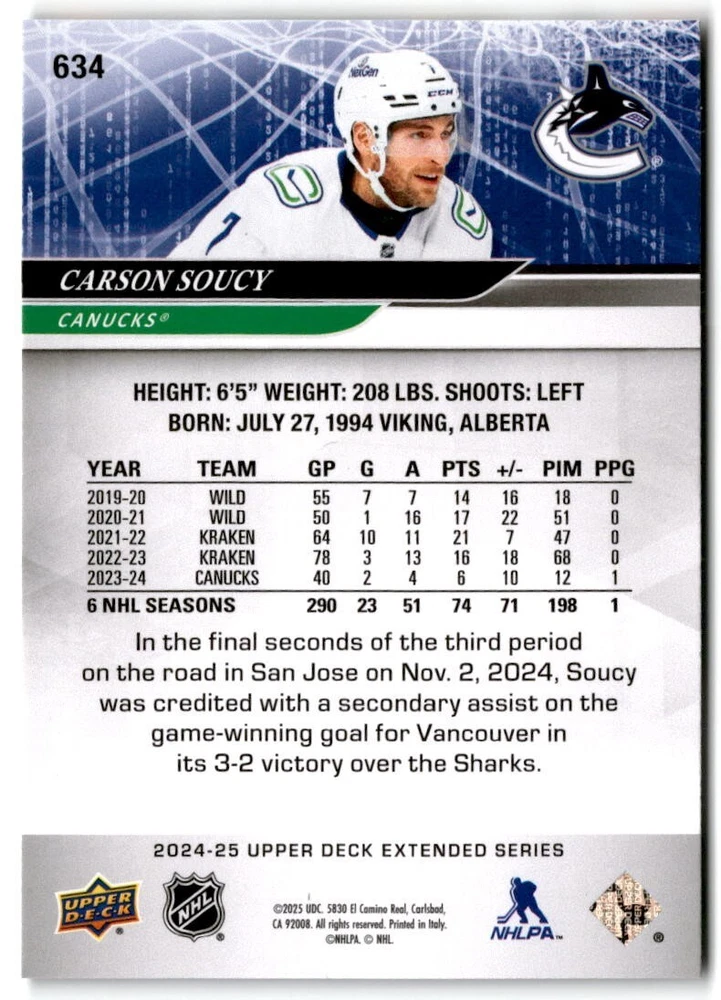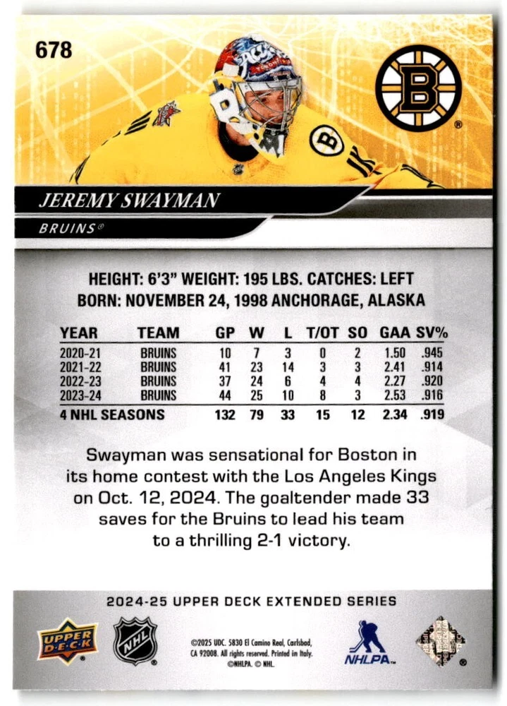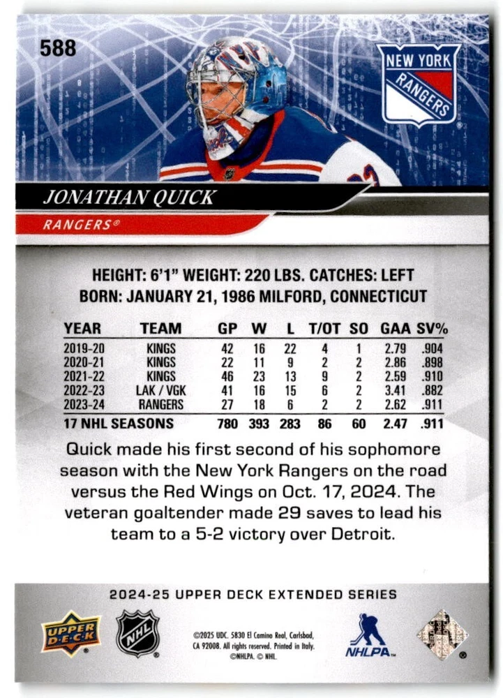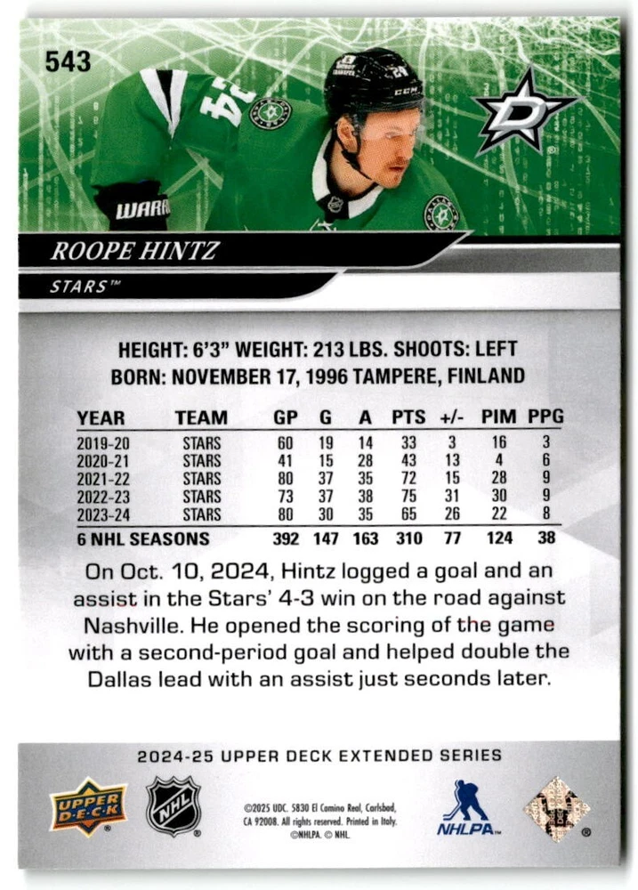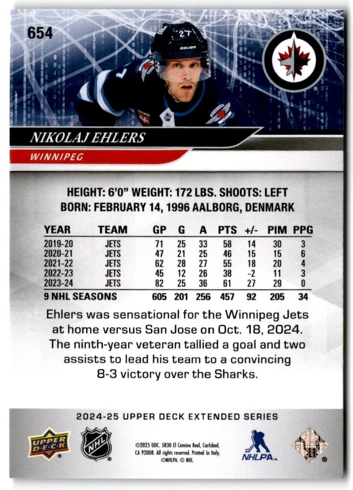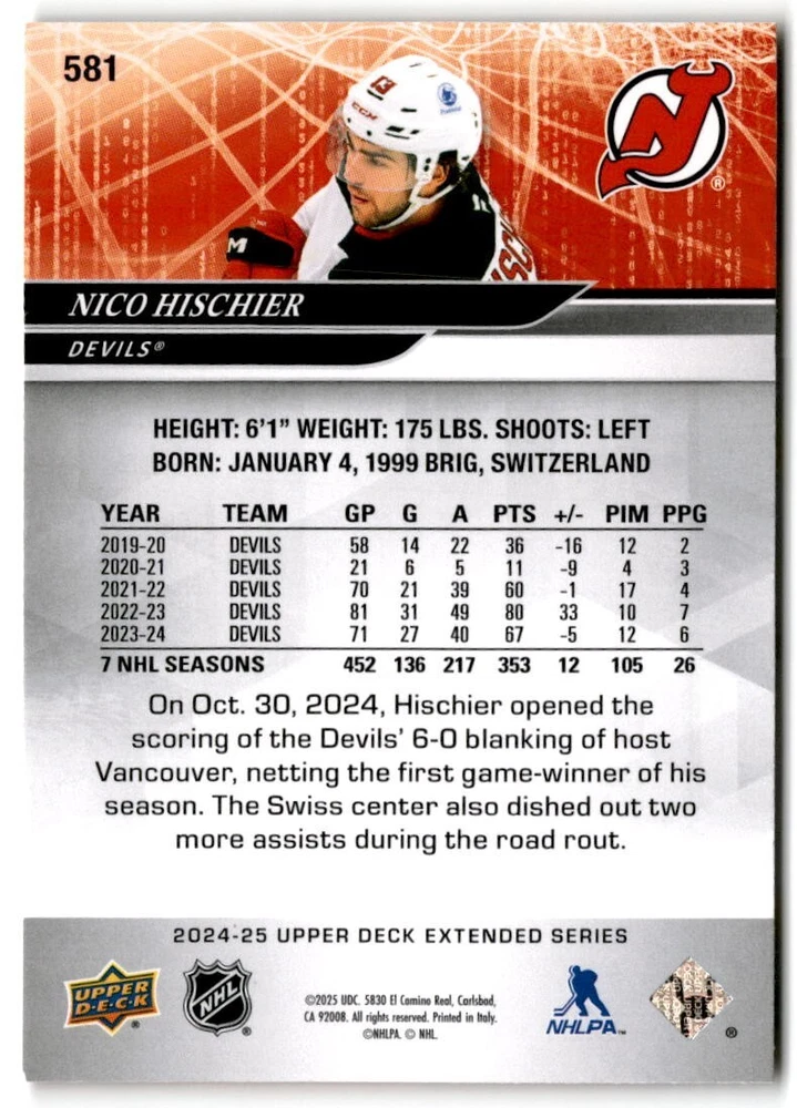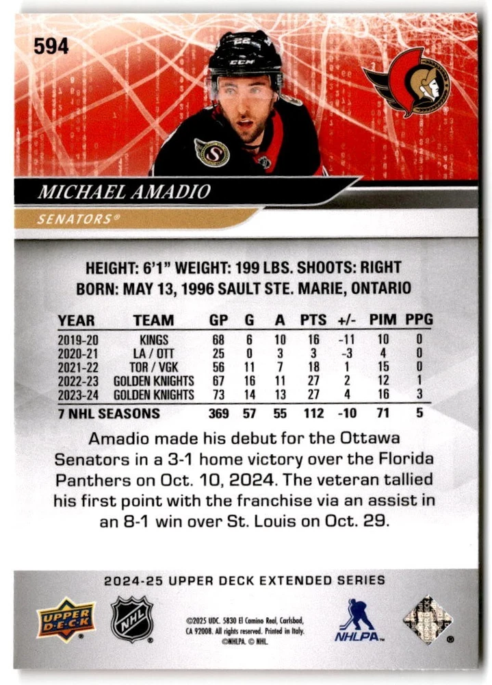 2024-25 Upper Deck Extended Hockey Base #501-700 Complete Your Set You Pick Card The cards are pictures of one of that specific card we are selling you may get that one or another one. Please pick from drop down menu for the cards you would like. All cards came directly from packs I opened. Please message me with any questions. Shipping - Card(s) will be shipped within three business days (Thursday night orders will be done Mon/Tue and in Tue/Wed mail) and orders will be shipped in a penny sleeve or case. EXTRA SPECIAL - This Listing Only. FREE SHIPPING on this listing using eBay standard envelope unlimited cards here FREE shipping! Purchase unlimited cards in this listing and your shipping is FREE. If your total on the cards is $25 or more pre-tax they will automatically be upgraded to a bubble mailer. If you would like shipped in a bubble mailer and your total is less than $25 in cards please choose the USPS First Class shipping for $4.99. International Orders are more for shipping. Just as a reminder if you are purchasing cards in a special deal (I do change them from time to time) you must purchase all the cards at one time via the cart to qualify for the special. * If an item is not received and it does not show delivered. You must submit an item not received through eBay for each card of that order. If it shows delivered and you do not see it in your mailbox many times with eBay standard delivery it can arrive the next day. If you do not see it then please check around to see if neighbors received the card or if it might have fallen to the ground possibly check with your postmaster. Refunds are not given on delivered mail.
