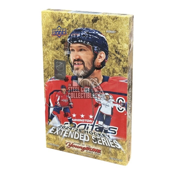 The 2024-25 Upper Deck Extended Series is a set of trading cards featuring players from the National Hockey League (NHL). This set includes a variety of popular athletes such as Artemi Panarin, Alexander Ovechkin, and Nathan MacKinnon. The cards are manufactured by Upper Deck and are made of card stock, with a standard size and English language. This collection is a must-have for fans of ice hockey looking to complete their set with base cards from the 2024-25 season. All cards ship in sleeves and top loaders. Some cards under $20 may ship in sleeves and semi rigid card holders. Orders of 5 cards or more will ship in sleeves and a set bag (no top loaders).