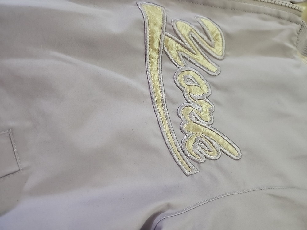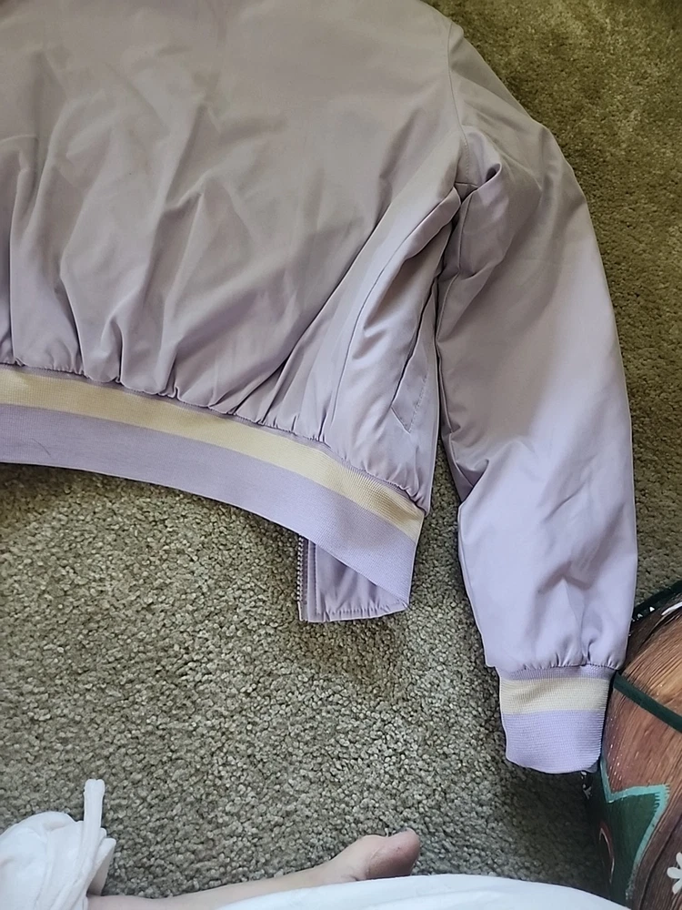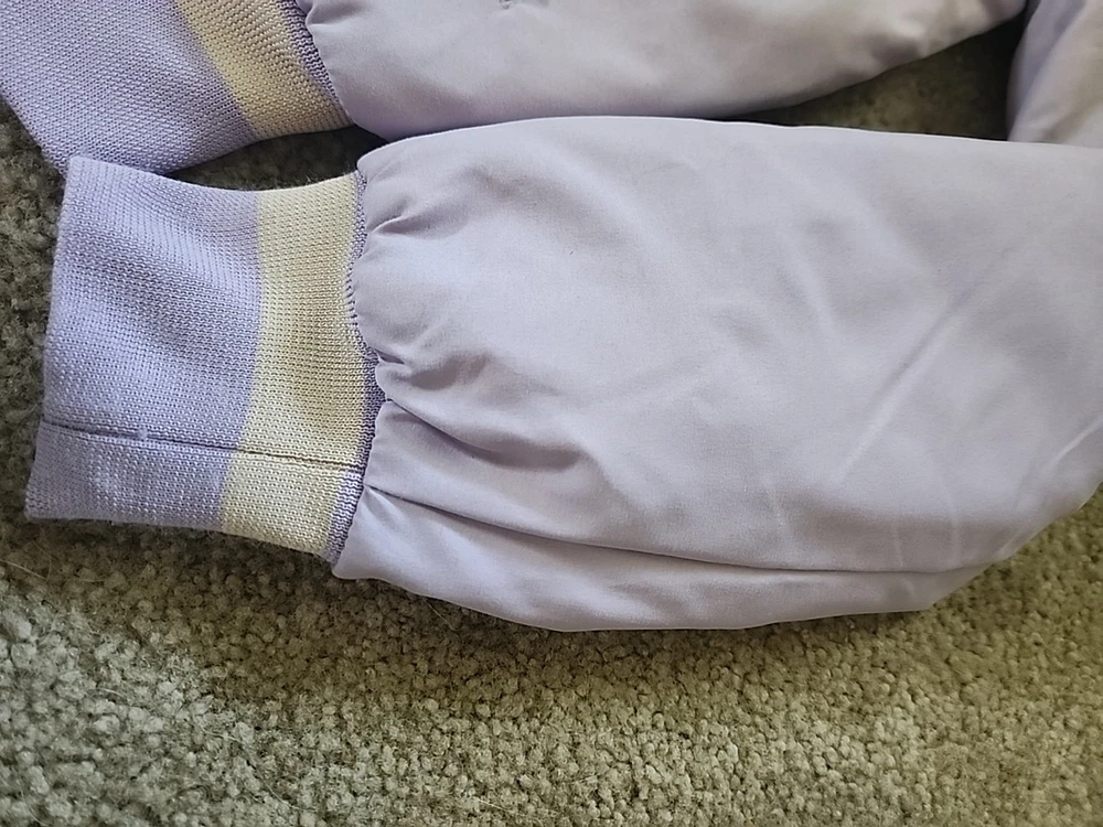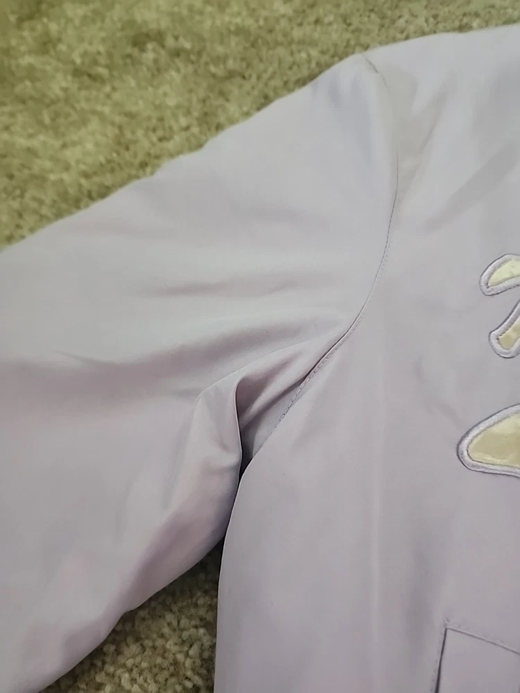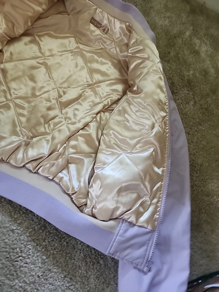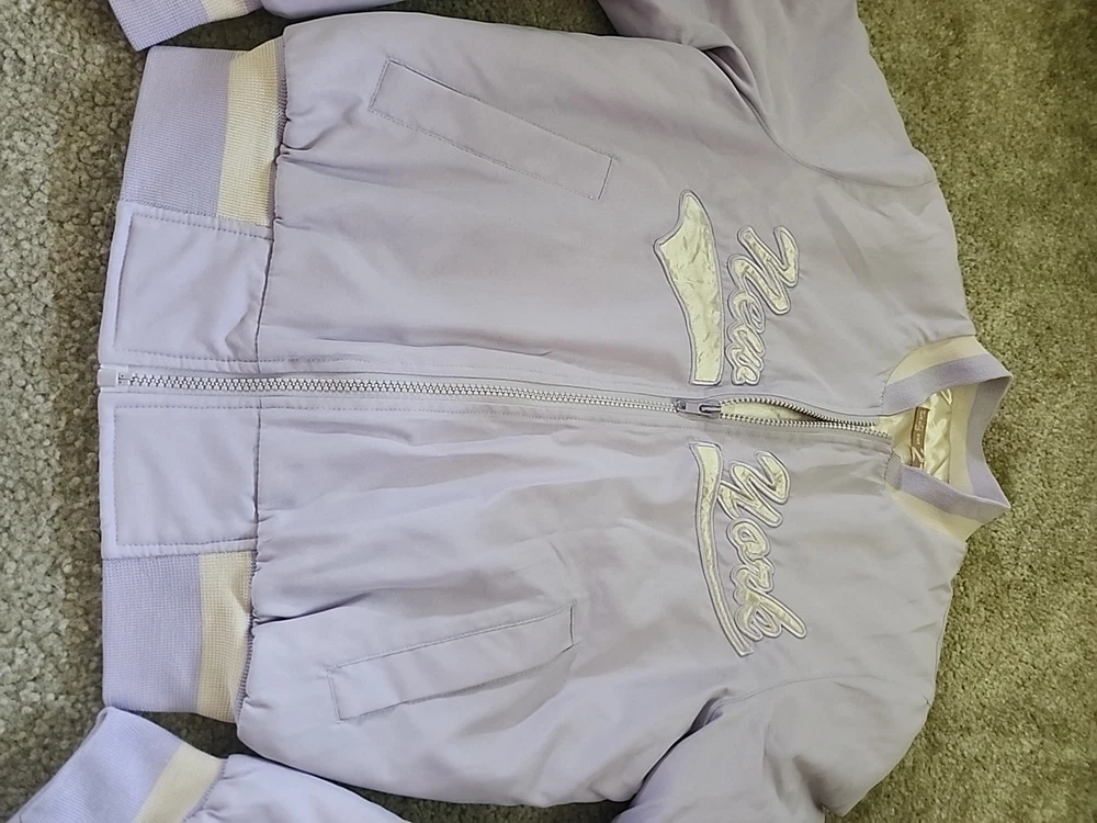 The 21 New York Lavender Jacket Vintage is a stylish and versatile outerwear piece perfect for various occasions such as travel, casual outings, and workwear. Made from a mix of polyester, cotton, satin, and nylon, this jacket features a zip closure, lined interior, and a range of features like elastic waist, pockets, and wind resistance. With its vintage design and purple color, this jacket is a great addition to any wardrobe, suitable for all seasons and available in a size small. Perfect for those looking for a classic and timeless jacket with a hint of 80s and 90s style.(SIZE IS BEING GUESSED AT COULDNT FIND