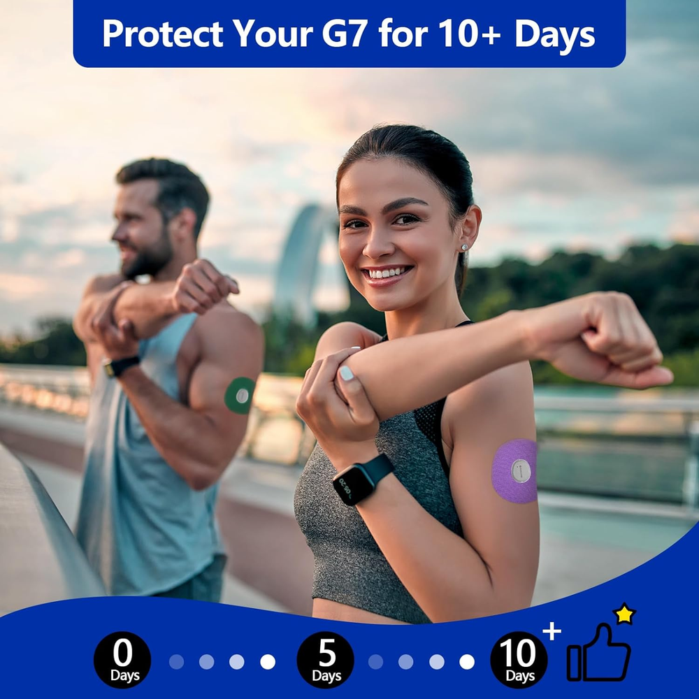 These G7 over patches are a game-changer! They keep my Dexcom sensor secure and comfortable for the full 15 days, even through showers and workouts. The adhesive is gentle on my skin with zero irritation, and the pre-cut hole makes application super easy. The waterproof design stays put without fraying or lifting at the edges, giving me total peace of mind. Highly recommend for anyone who wants reliable, long-lasting sensor protection!