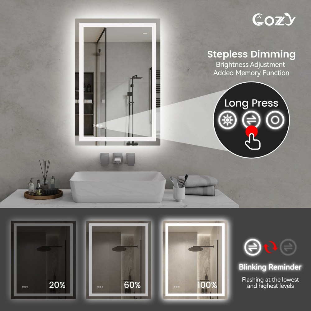 24"x36" LED Bathroom Mirror, Front-Lit and Back-Lit, Light Strip Unseen When Turned Off, Color Term Adjustable, Stepless Dimmable, 3 Colors CRI90+, Brightness Memory, Shatter-Proof, Anti-fog LED Vanity Mirror, Easy Installation, IP44 Waterproof, LM27-AL-2436