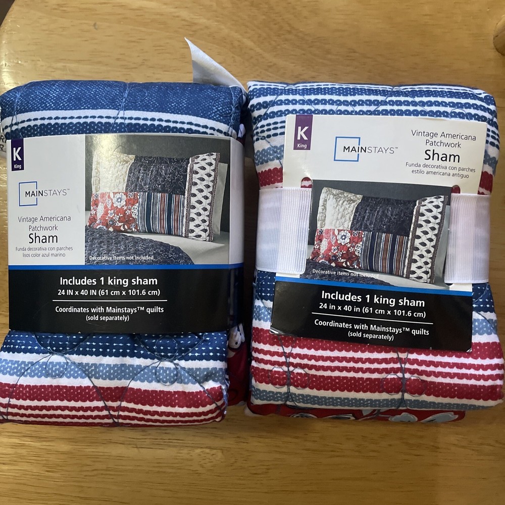 (2)Mainstays Vintage Americana King Sham Blue & White & Red Polyester. Condition is New with tags. Shipped with USPS Ground Advantage....