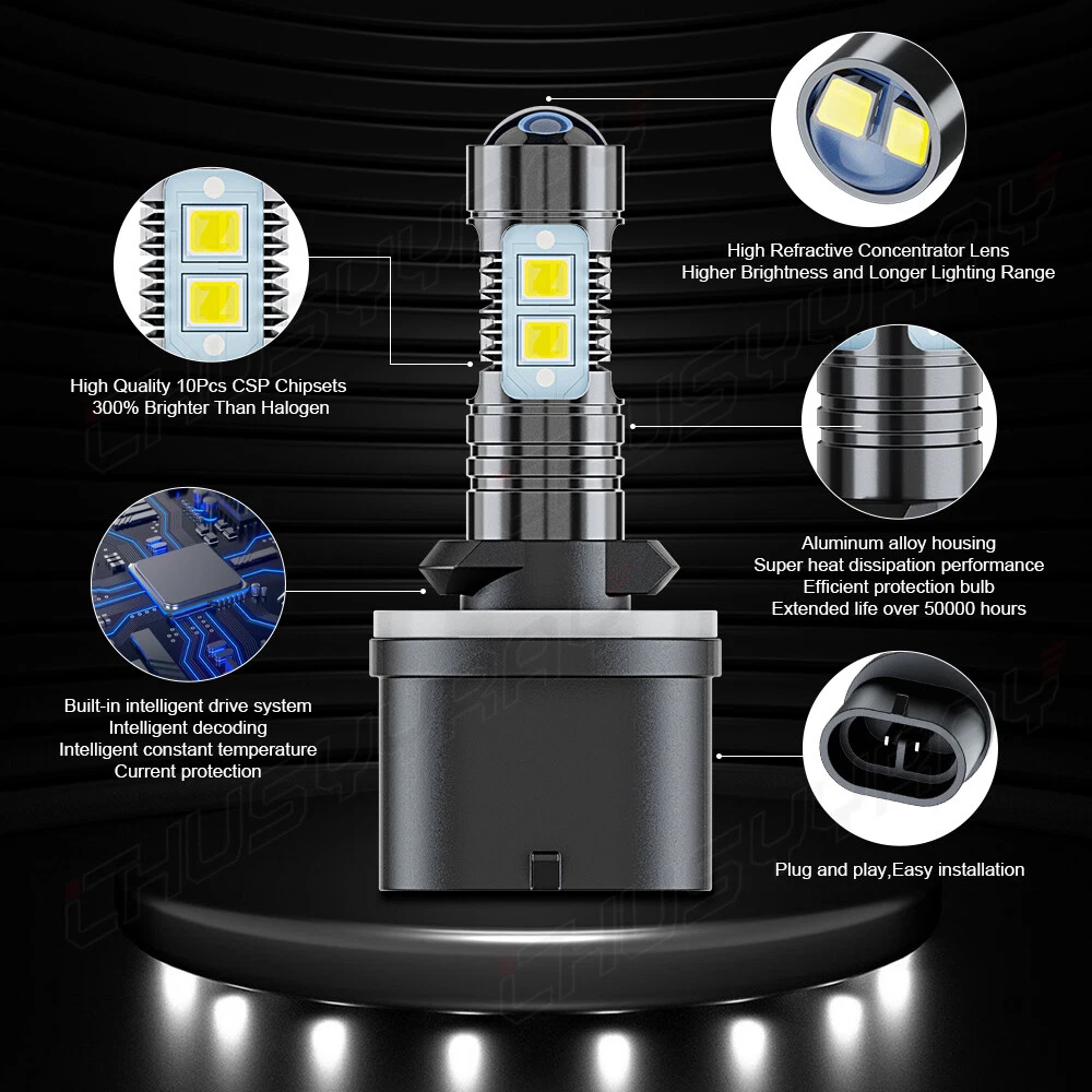 Plug Type: 880 (LED Headlight or Fog Light) Super White 6000K, 8000LM, over 50000hrs, 300%Brightness, 60%Energy Saving, Aluminum Alloy Hosing,Built-in intelligent system, IP67, Plug&Play, 1:1 Design, 5 Year Warranty Purchase Notes: -Our LED bulbs only replace halogen or led headlamps.Can not replace the HID headlamps. Please double check before order. -If you cannot find your vehicle in this list, please contact us and we will recommend the correct bulb size to you. -If you are unsure of your bulb type, please remember to send us a message informing us of your car brand, model, year, and other information that can help check the bulb type! Specifications: Bulb Size: 880/892/893/899/890 Usage: Fog Light,Headlight Lighting Technology: LED Light Source:4Size 10pcs CSP CHIP Package includes: 2 Bulbs Voltage: DC 9-32V Wattage: 16W/Set (8W/bulb) Luminous Flux: 4000LM Color Temperature: 6000K Super White Lifespan: Over 50,000 hours Certification: IP67 Waterproof and Dust Seal Operating Temperature: -40-80 degree Celsius, 100% Brand New Warranty: 5 years warranty Placement on Vehicle: Front, Left, Right Fitment Type: Direct Replacement Beam Angle: 360 Degree Product performance: 1. This product is made of 4Sizes 10pcs Chip constant current 2. This light source adopts imported chips with stable quality and long service life 3. The power of this product is only 1/20 of the traditional halogen lamp, using more energy-saving and environmental protection 4. This product is used by LED constant current drive, with stable performance and strict testing. It is safer to drive on the car; 5 This product can be applied to various models Product advantages: -- Using high-quality new technology packaging, using series chips, constant current voltage regulator has a longer life and better stability -- The light is evenly distributed, with high brightness and strong penetration. The best choice for foreign trade export. -- Composed of multiple LED chips, integrated strong light, no light spot can be seen, and the brightness is uniform. No dark area -- Constant current, anti-interference, and brightness are more than 5 times of the same chip wick. Packaging include: 2X 880 LED Fog Light Bulbs New and old boxes are shipped randomly Notes: -- Dear customer, if you have any inquiries, quality problems or inappropriate or other problems about our products, please do not open a return dispute or return application or bad evaluation directly, contact us through eBay information, we will give you a satisfactory solution . -- We try to reply to your email within 24 hours, but due to the large volume of emails received every day and different time zones, we may not be able to respond to your email immediately. Hope your understanding, thank you