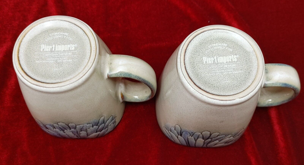 These mugs are even prettier in person! The chrysanthemum design is vibrant and charming, adding a cozy touch to my morning coffee. Despite being pre-owned, they arrived in great condition—just as pictured. They feel sturdy and hold the perfect amount. Shipping was fast, and the seller was super responsive. Love the vintage Pier 1 charm at an affordable price. Would absolutely buy again!