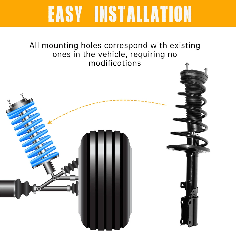 Just installed these shock struts on my 2005 Camry and the difference is night and day! The ride is so much smoother—no more bouncing or loud noises over bumps. They arrived fast and were easy to install. Perfect fit, great quality, and the price was unbeatable. Super happy with this purchase and would definitely recommend to anyone needing replacements!