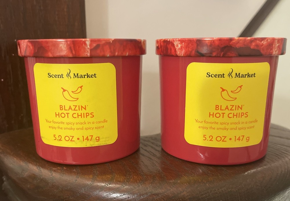 2x Scent Market Blazin' Hot Chips Scented Jar Candle Christmas Gift 5.2 OZ New free shipping...
