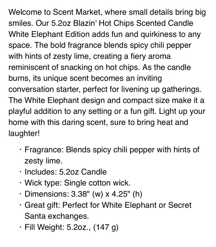 | Scent | Blazin' Hot Chips |