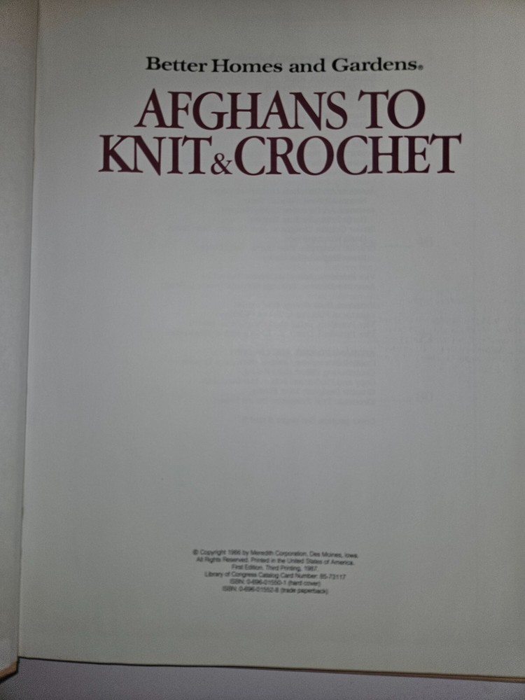 Lot of 3 vintage Better Homes and Gardens Crafting books. All are First Editions from 1985 - 1987. Despite their age they are all in very good condition with very little signs of usage. Titles include: Afghans to Knit & Crochet Christmas Cross-Stitch Creative Machine Stitchery All 3 were acquired from an estate sale and come from a smoke free home.