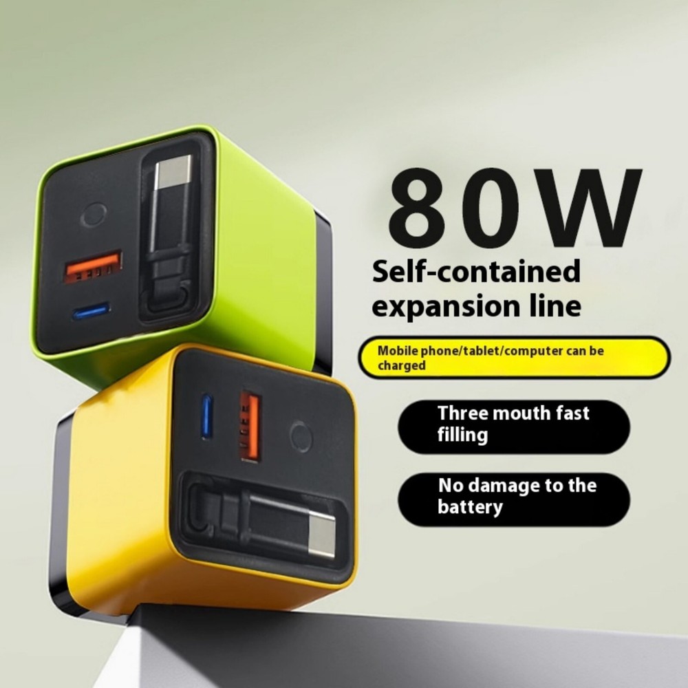 This 3-in-1 GaN charger is a game-changer! The retractable USB-C cable is super convenient, and the 80W max fast charging powers up my laptop and phone incredibly quickly. I love having two USB ports plus Type-C for all my devices—no more carrying multiple chargers. The compact design and GaN tech make it sleek and efficient. Perfect for travel or daily use!