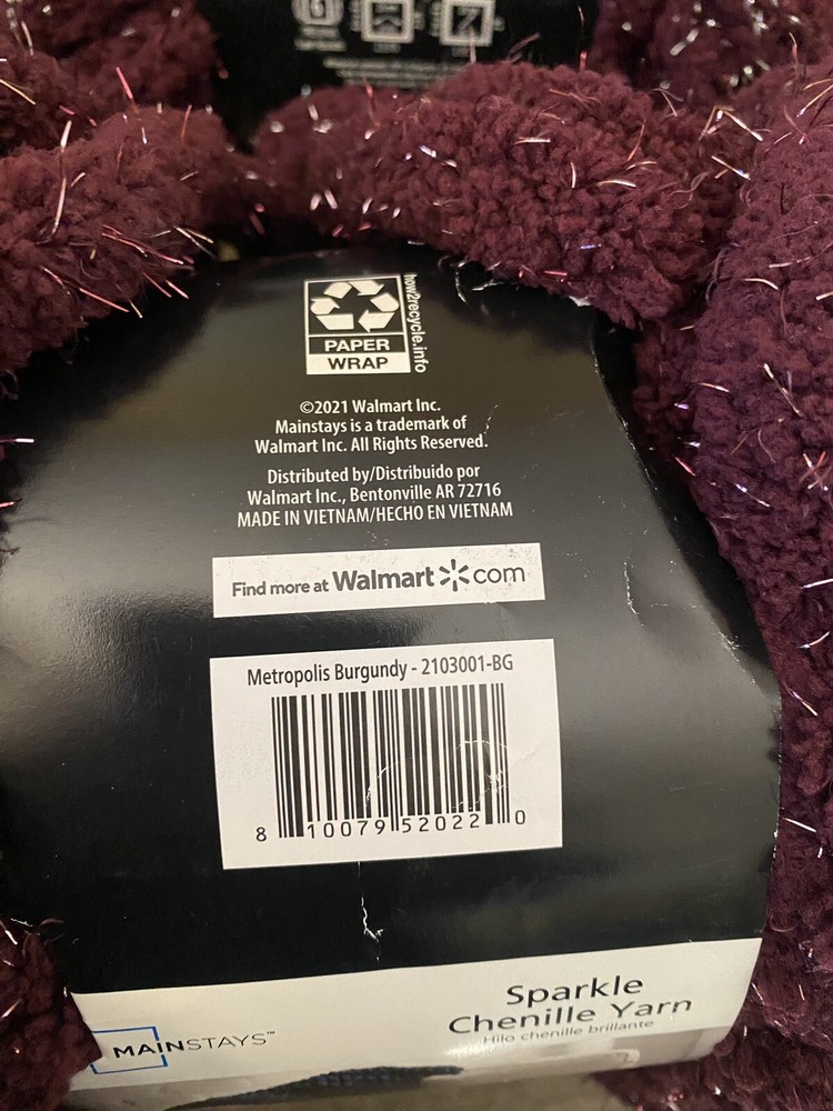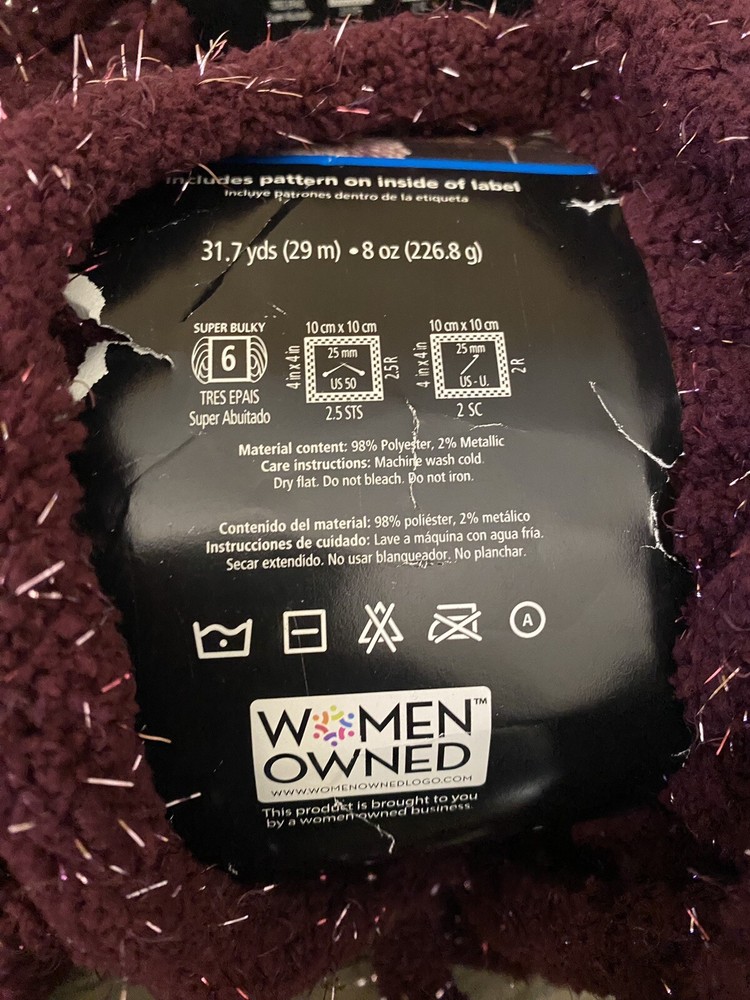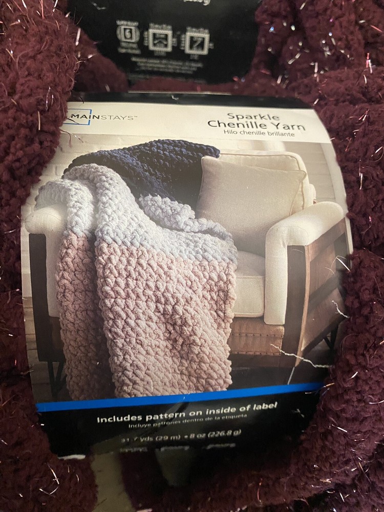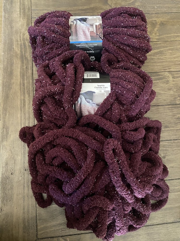3 Burgundy Sparkle Chenille Yarn 2 have the tag and one have the tag missing 31.7yds each 8oz each...