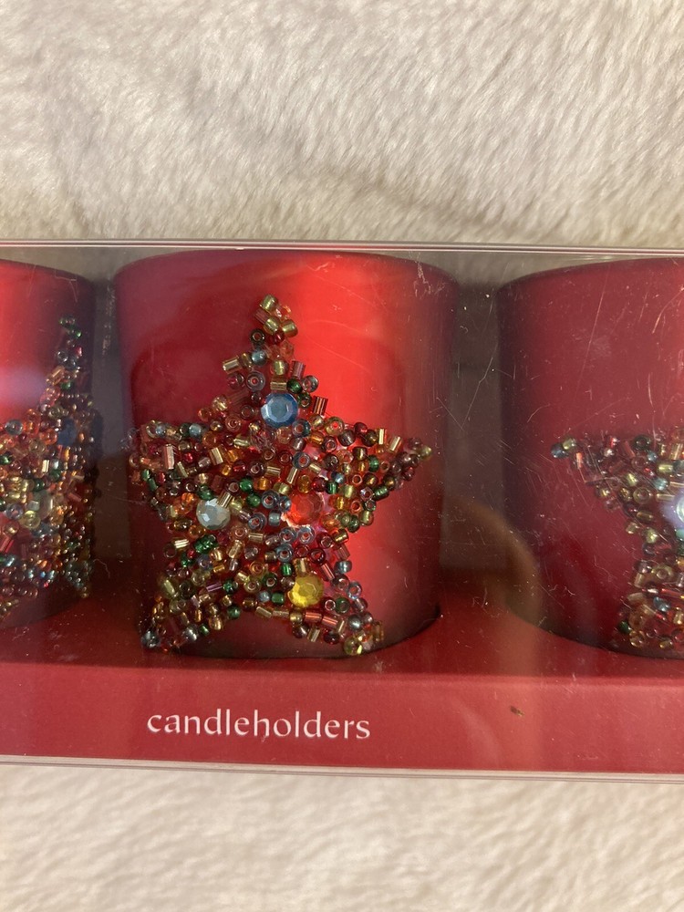 Add some festive charm to your home decor this holiday season with these beautiful frosted red candle holders from Pier 1 Imports. The set of three candle holders features a bead star design and is made of high-quality glass material. Perfect for Christmas, they will create a warm and cozy ambiance in any room.