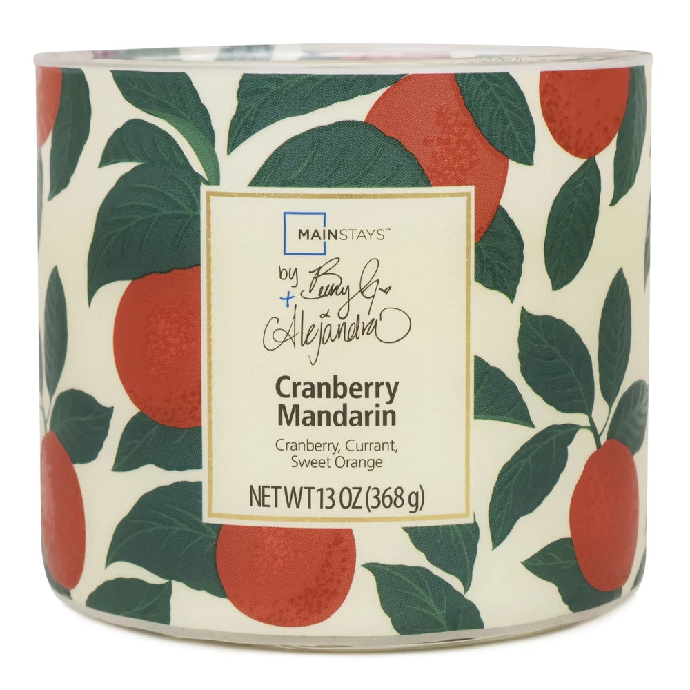 Product details Global music icon Becky G. and her mother, Alejandra, proud LA natives and descendants of Mexican immigrants, have teamed up with Walmart to introduce the Mainstays by Becky G. & Alejandra home collection, inspired by their family's journey and commitment to social empowerment. Among the collection is the Mainstays by Becky G. & Alejandra 3-Wick Cranberry Mandarin Candle, a fragrant candle that captures the enchanting aroma of cranberry, currant, and sweet orange. Reflecting the warmth of family and the resilience of their heritage, this candle will transform any space into a welcoming home, embodying their mission to provide stylish and affordable home decor that adds a touch of sophistication and elegance. Mainstays by Becky G. & Alejandra 3-Wick Cranberry Mandarin Candle, Orange & Green, 13 oz A fragrant candle that captures the enchanting aroma of cranberry, currant, and sweet orange With 3 wicks for a steady and even burn Great for unwinding after a long day or setting the mood for a cozy evening Available in a variety of fragrances and decorative wrap designs Measures 4" x 4" x 3.75" Coordinate with other pieces from the Mainstays by Becky G. & Alejandra Collection