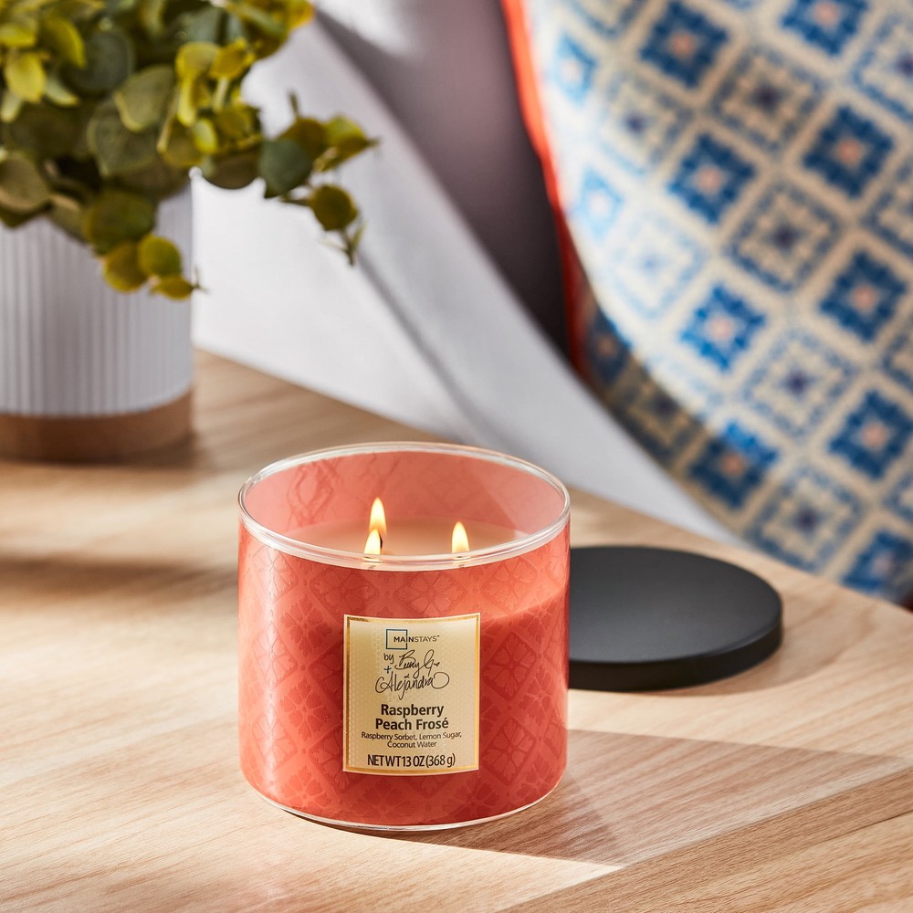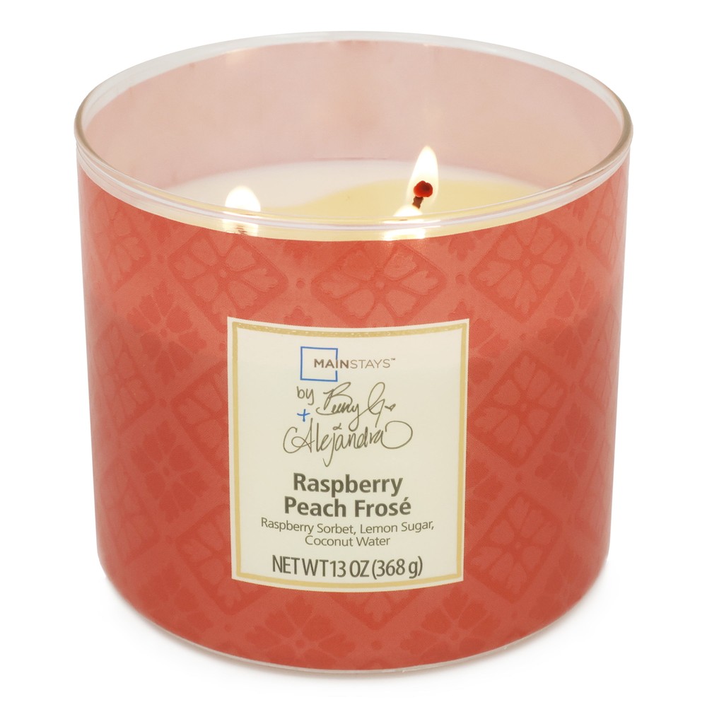 Product details Global music icon Becky G. and her mother, Alejandra, proud LA natives and descendants of Mexican immigrants, have teamed up with Walmart to introduce the Mainstays by Becky G. & Alejandra home collection, inspired by their family's journey and commitment to social empowerment. Among the collection is the Mainstays by Becky G. & Alejandra 3-Wick Raspberry Peach Frose Candle, a fragrant candle that captures the enchanting aroma of raspberry sorbet, lemon sugar, and coconut water. Reflecting the warmth of family and the resilience of their heritage, this candle will transform any space into a welcoming home, embodying their mission to provide stylish and affordable home decor that adds a touch of sophistication and elegance. Mainstays by Becky G. & Alejandra 3-Wick Raspberry Peach Frose Candle, Orange Tile, 13 oz A fragrant candle that captures the enchanting aroma of raspberry sorbet, lemon sugar, and coconut water With 3 wicks for a steady and even burn Great for unwinding after a long day or setting the mood for a cozy evening Available in a variety of fragrances and decorative wrap designs Measures 4" x 4" x 3.75" Coordinate with other pieces from the Mainstays by Becky G. & Alejandra Collection