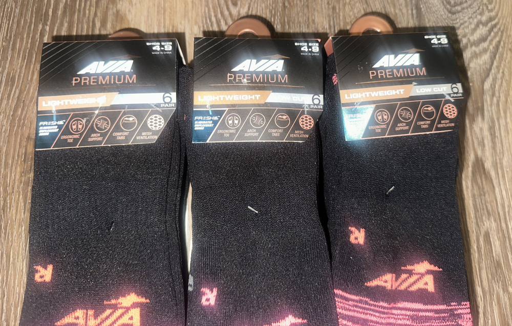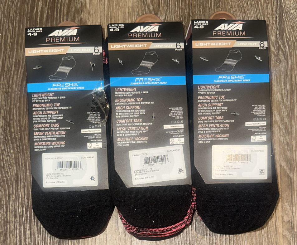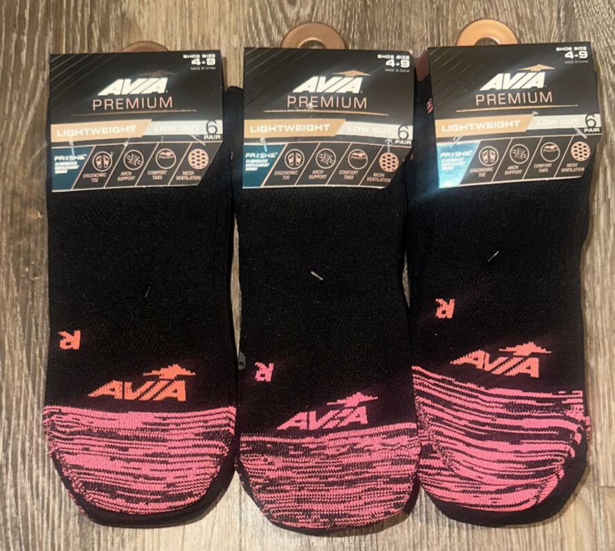 The Avia Premium Socks are a comfortable and lightweight option for women in size 4-9. Made from a polyester blend material, these socks feature a solid black color and low cut design for a casual fit. They are machine washable and come in a pack of 6 pairs, making them a practical choice for everyday wear. The full toe style and opaque material make them versatile for all seasons, whether it be winter, summer, fall, or spring. Designed for comfort and performance, these socks are a stylish addition to any wardrobe. 3 packs as shown