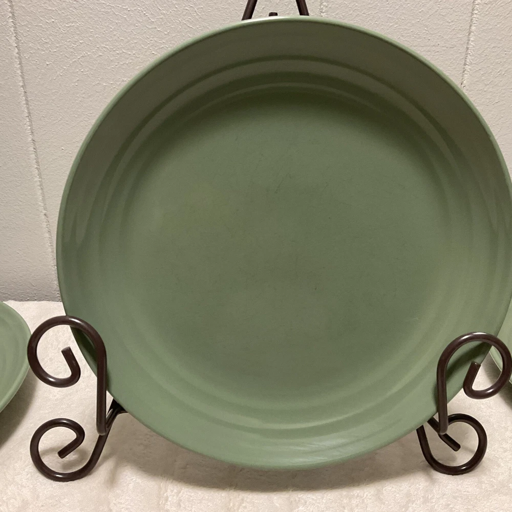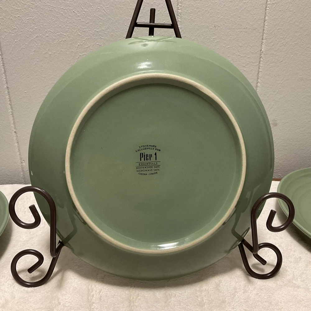 Absolutely love these Pier 1 moss green plates—beautiful earthy color, perfect size for salads or small meals, and they hold up well in the dishwasher. The earthenware feels sturdy yet elegant, and the 3-piece set is so versatile. Even though they're used, they still look great—no noticeable wear. Would snag more if shipping allowed!