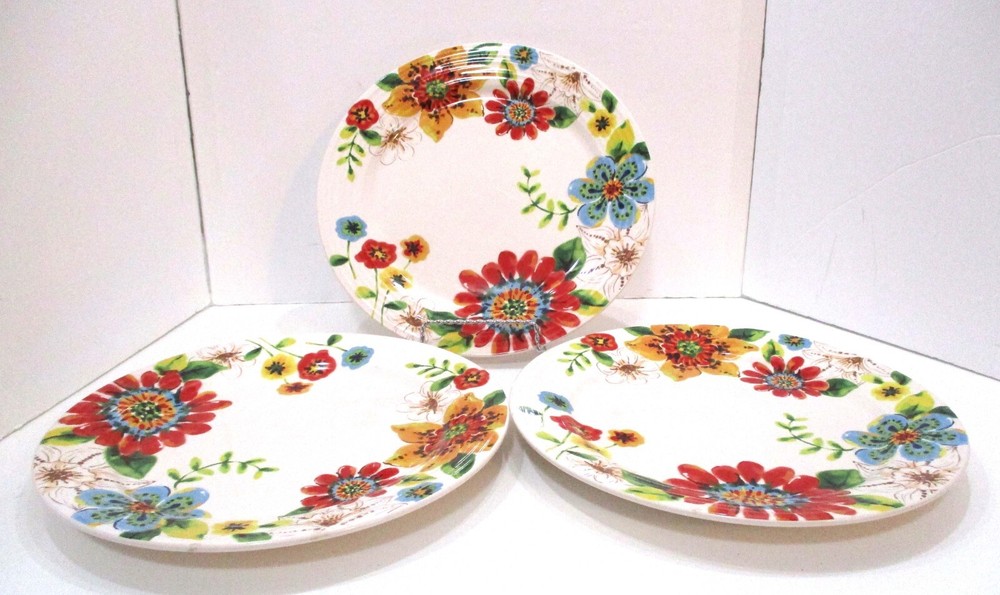3 salad plates from Pier1 Imports 8.75"" in diameter with a really colorful floral pattern called "Lucie" Discontinued I have 3 matching dinner plates in another listing Buyer pays my actual s hipping cost to your location Thanks for looking