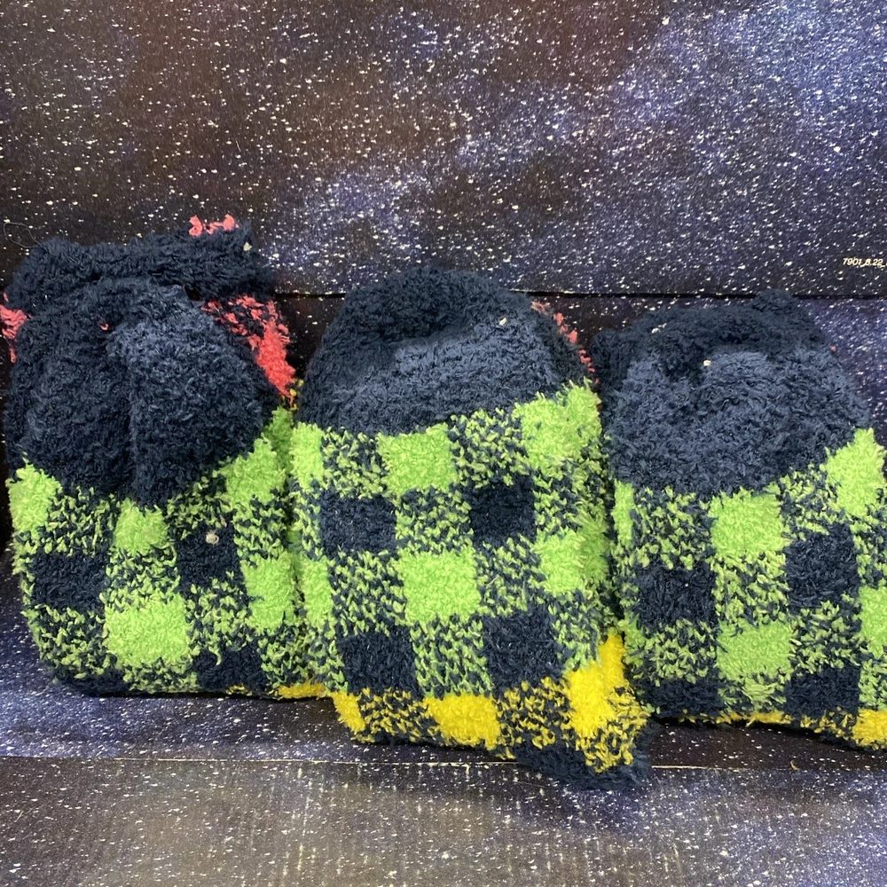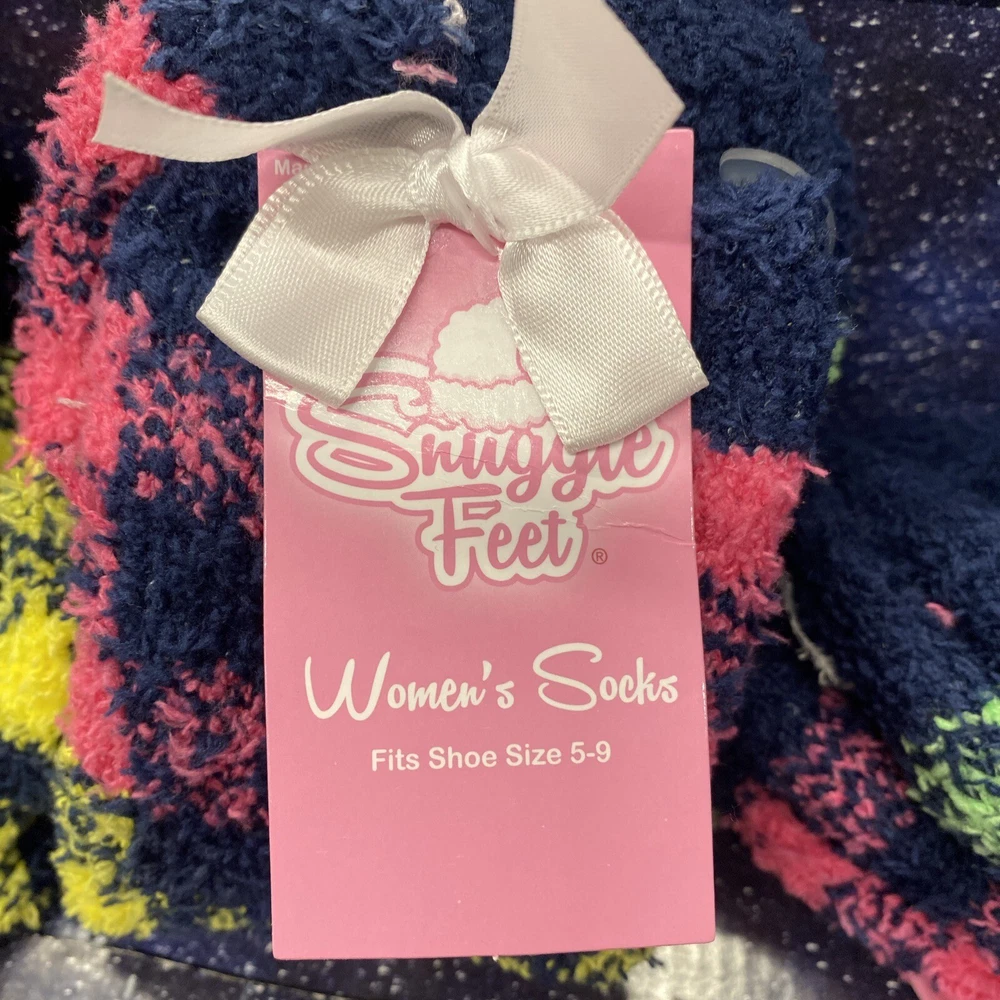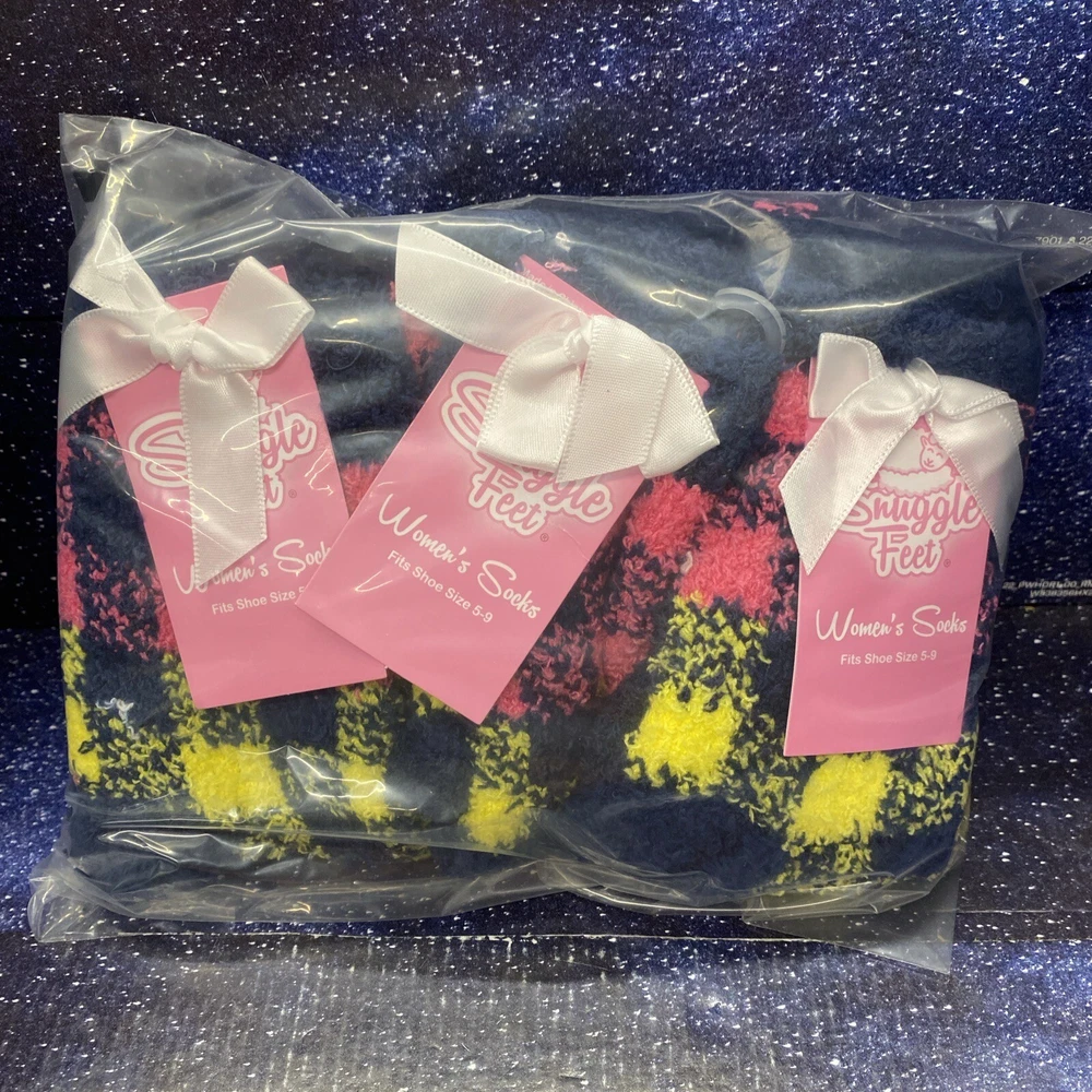 Indulge in ultimate comfort with these Snuggle Feet Women's Fuzzy Socks. The colorful pattern and soft material make them perfect for a casual occasion or lounging at home. The ankle-length socks have a full toe style and fit shoe sizes 5-9. Whether you're looking for a snuggly gift or treating yourself, these socks are a great choice. The check pattern and Snuggle character add a touch of fun to your sock collection. Made of 99% polyester and 1% spandex, these socks are sure to keep your feet warm and cozy.