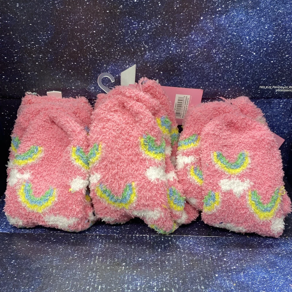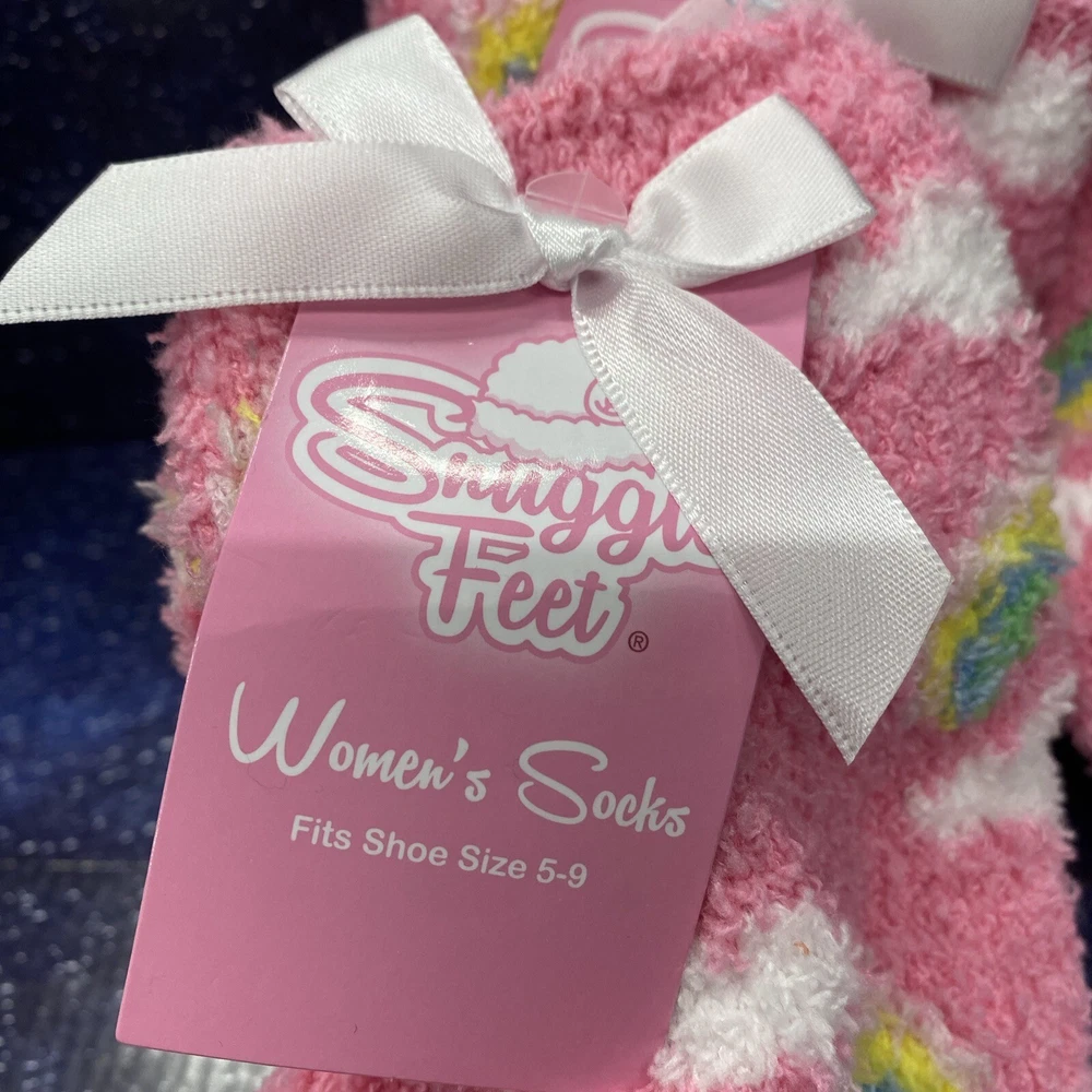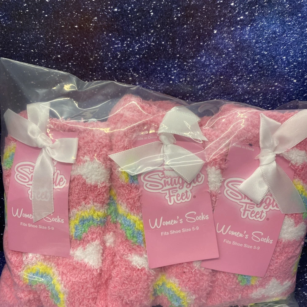Indulge in the ultimate comfort with these Snuggle Feet women's fuzzy socks. The black and pink check pattern adds a dash of color to your casual outfit while keeping your feet warm and cozy. These ankle-length socks are made of 99% polyester and 1% spandex, ensuring a perfect fit for shoe sizes 5-9. The full toe style and soft material make these socks perfect for snuggling up on a chilly evening or lounging around on a lazy afternoon. These socks are new with tags and come in a set of three. Add a little color and comfort to your sock collection with Snuggle Feet fuzzy socks.