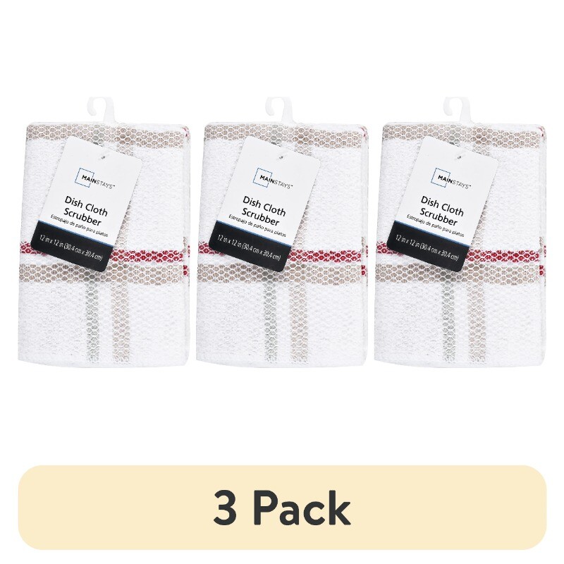 Keeping your kitchen clean is so much easier with the Mainstays 4-piece kitchen scrubber dishcloth set with red stripes. These scrubber dish cloths are 100% cotton on one side with a polyester mesh on the other side that makes scrubbing tough messes a breeze. They clean non-stick surfaces safely and with ease! Mainstays Scrubbers are durable, absorbent, and machine washable for easy care. Reusable cloths mean savings on those expensive disposable alternatives! These scrubber dishcloths are a great gift idea for housewarmings and weddings and make a great addition to any home. The Mainstays 4-piece scrubber dishcloths can be used in every room for any cleaning task you have on your list! Each set comes with 4 (12 in. by 12 in.) dishcloths in a coordinating blue windowpane stripe design. 100% cotton. Set includes four 12 in. wide by 12 in. long scrubber dishcloth. Easy Care - machine wash and tumble dry. Great for cleaning up those stubborn messes in any room of your home. Perfect gift idea for new homeowners, newlyweds or even yourself!! Brighten up your kitchen with this colorful design. Durable and made to last, you will be using these dishcloths for years to come.