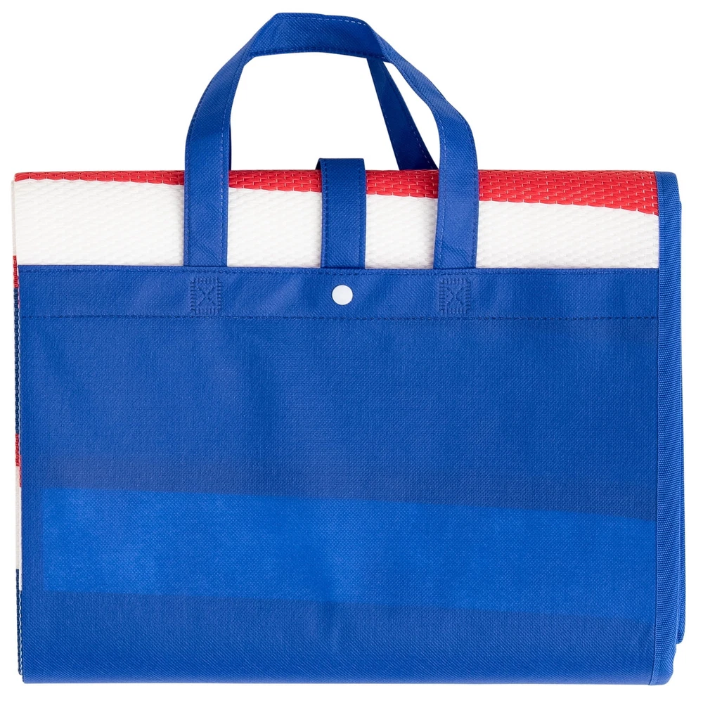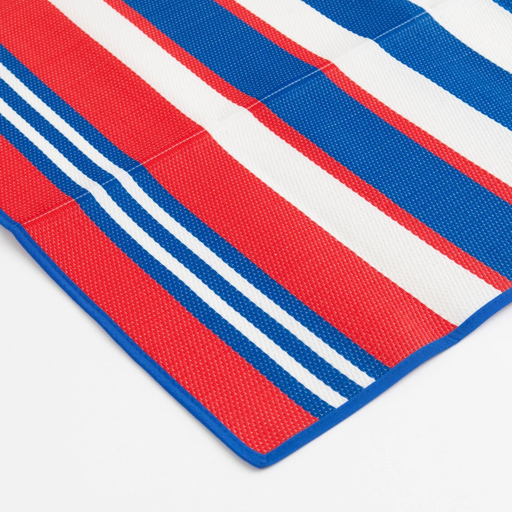 Bring bright color and modern design to your outdoor adventure, and make any space feel like your own personal oasis with the Mainstays 5ftx7ft Red, White, and Blue Stripe Beach Mat. Lightweight and easy to clean, this colorful mat is the perfect piece to jazz up your spot at the beach, campsite, or park. Classic stripes of red, white, and blue decorates a busy playroom without fear of fading or staining, or make the outdoors feel a bit more like home with this versatile, durable piece. Easily sweep or rinse off this beautifully woven olefin mat, made with stain resistant and fade resistant properties for long-lasting quality and design. Whether you’re packing up your camper for an outdoor adventure, enjoying a picnic in your backyard or headed to the beach, this piece is sure to brighten things up! For indoor or outdoor use. ! For indoor or outdoor use. Trusted Mainstays Brand Indoor and Outdoor Made of Olefin Stain Resistant Fade Resistant Versatile Striped Pattern Lightweight Foldable and has carrying strap 5'X7' Beach Mat