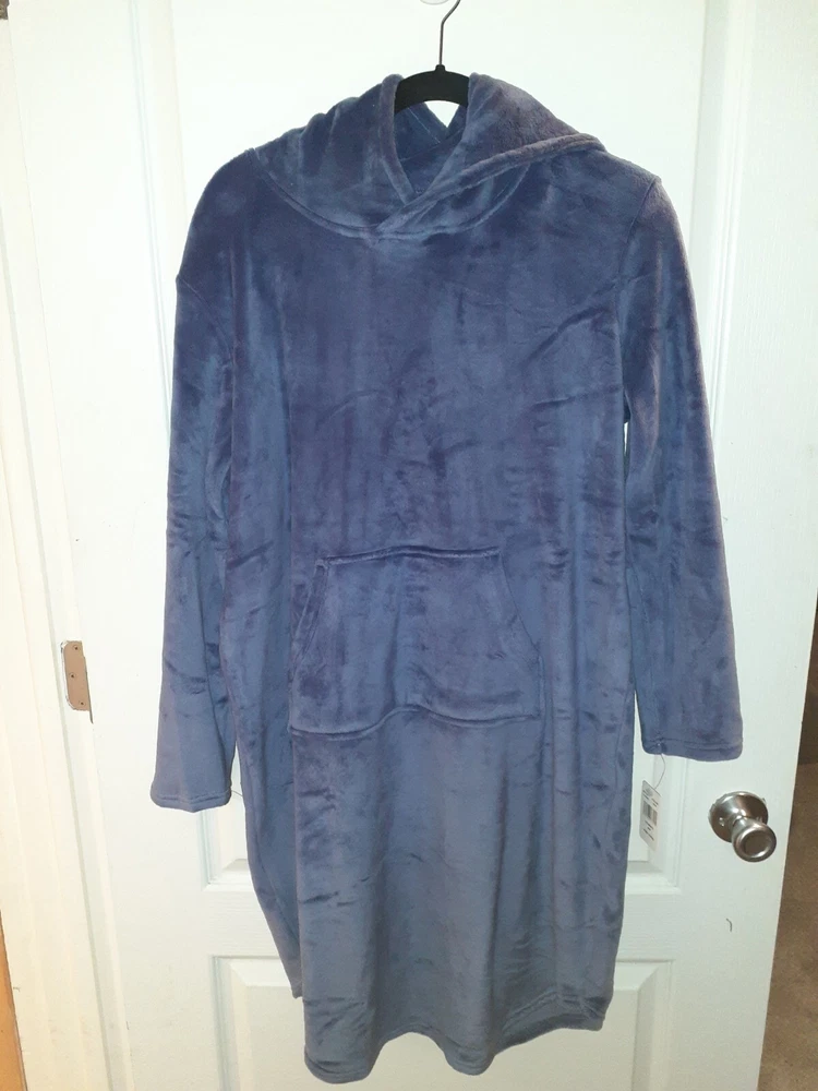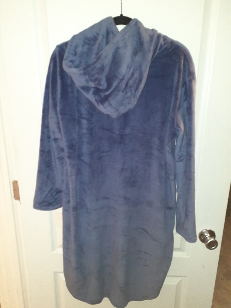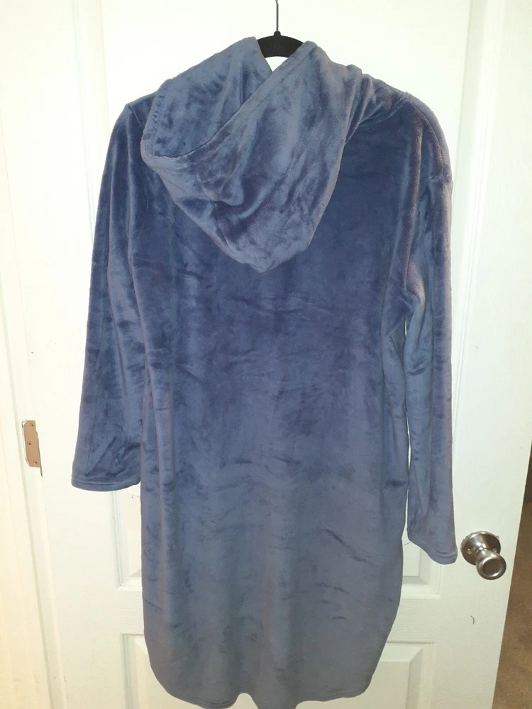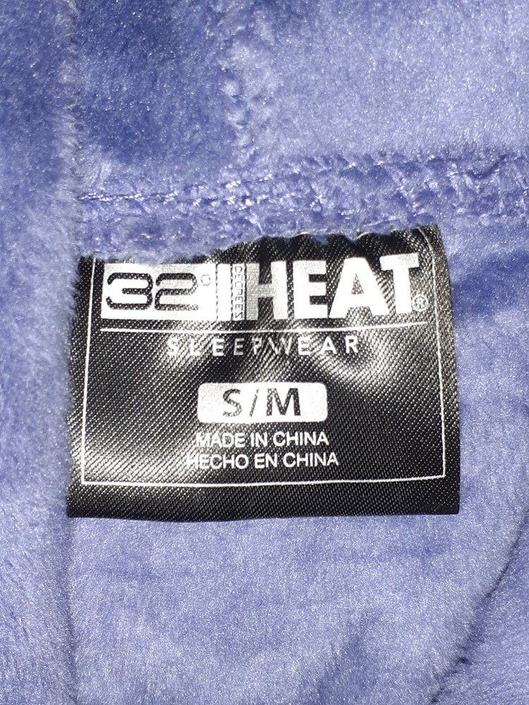 This 32 Degrees Heat Hooded Robe is perfect for those cozy and warm nights in. Made from a luxurious velour fabric with a beautiful purple color, this robe features a pullover closure and long sleeves. The hood and S-M size make it a perfect fit for women. The robe is easy to care for as it is machine washable and made from a blend of polyester and spandex. It's perfect for fall, winter, and spring seasons. This 32 Degrees robe is a must-have for anyone who loves to lounge in style and comfort. Measurements lying flat underarm to underarm 20" shoulder to bottom 36" underarm to sleeve bottom 17" womens s/m front pocket