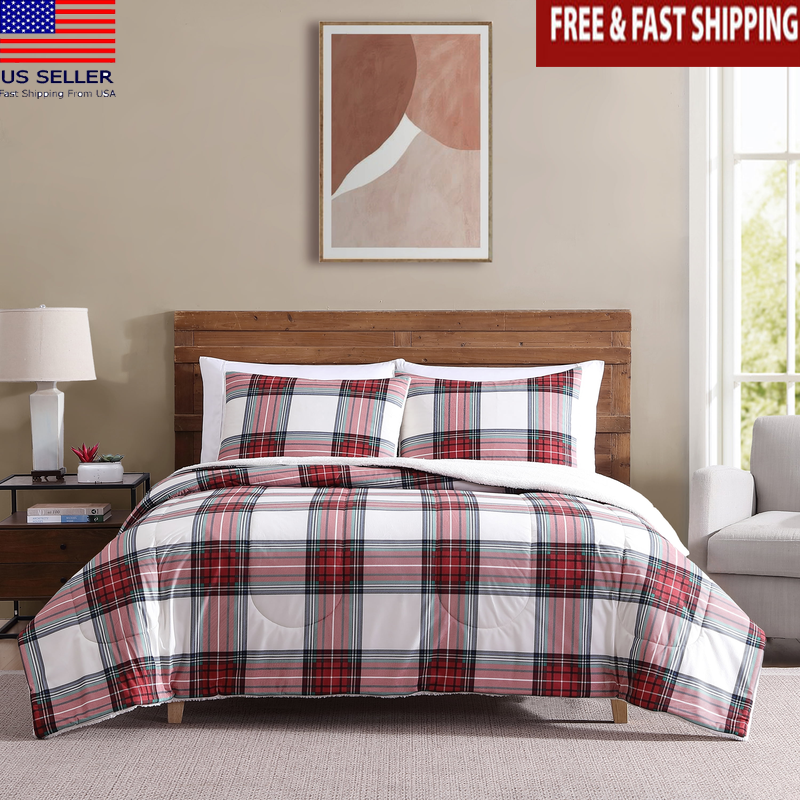 You may also like 5pcs Floral Bed in a Bag Comforter Set Twin XL Teen Bedding Reversible New 31.49 USD 33.15 USD Free shipping 5% off Get cozy with Mainstays 3-piece Adult Flannel Reverse to Sherpa Adult Comforter Set. This set includes a polyester flannel comforter with coordinating shams that reverse to a sherpa finish on the other side. The Sherpa reverse adds additional softness and warmth to your comforter, perfect for those cooler nights. This set is durable and machine washable, making it long lasting and easy to care for. Choose from a variety of prints and sizes to complete any bedroom in your home! • Mainstays Reversible 3-piece Adult Flannel/Sherpa Comforter Set • Includes 1 Full/Queen Reversible Comforter • 86x90” and 2 coordinating Shams: 20X26” • Super soft Flannel fabric with Sherpa reverse. • Cozy & warm for comfort and relaxation. • Made with durable 100% polyester fibers. • Heat transfer heat design with double diamond quilting pattern. • Easy care, machine washable. • Available in Stores and online. Brand: Mainstays Collection: Classic Collection Bed Size: Full/Queen Bedding Set Type: Comforter Sets Piece Count: 3 Items Included: Comforter & Shams Fill Material: POLY FILL Fabric Content: 100% Polyester Color: Red & White Features: Reversible Age Group: Adult Character Group: Plaids Manufacturer Part Number: MS042803784601 Assembled Product Weight: 6. 8 lb Assembled Product Dimensions (L x W x H): 15. 00 x 14. 00 x 10. 50 Inches You may also like Sunlit Woodland Landscape Photography Stretched Canvas Art Ready to Hang New 46.95 USD Free shipping 6'6" Jig Spinning Rod Nearshore Offshore Heavy Duty Durable Fishing Equipment US 123.92 USD Free shipping 2-Ply Beverage Napkins 1000 Count Extra Absorbent Disposable Coin-Embossed New 70.4 USD Free shipping Adjustable LED Desk Lamp Dual Shades Touch Controls Dimming Eye Comfort New 61.95 USD Free shipping Battery Operated Woven Pendant Light LED Remote Control Outdoor Spaces New 122.45 USD Free shipping Machine Washable Rectangle Dog Bed Faux Sherpa Hypoallergenic Removable Cover US 69.3 USD Free shipping Artificial Bougainvillea Hanging Basket Decor Lush Silk Plant W/ Vines New 77.78 USD Free shipping 3 Tier Glass End Table Modern Design Tempered Glass Stainless Steel Indoor Use 71.92 USD Free shipping Large Breed Puppy Dry Dog Food Chicken Brown Rice 30lbs DHA Protein Vitamins New 116.22 USD Free shipping Large 10 Cup Water Filter Pitcher BPA-Free W/ Standard Filter Easy Fill Handle 48.79 USD Free shipping Pegboard Panel Kit 2 Panels 28 Hooks 40lb Load Capacity Tool Organizer New 74.38 USD Free shipping Self-Priming Acrylic Latex Paint Masonry Stucco Brick Interior Exterior New 49.55 USD Free shipping