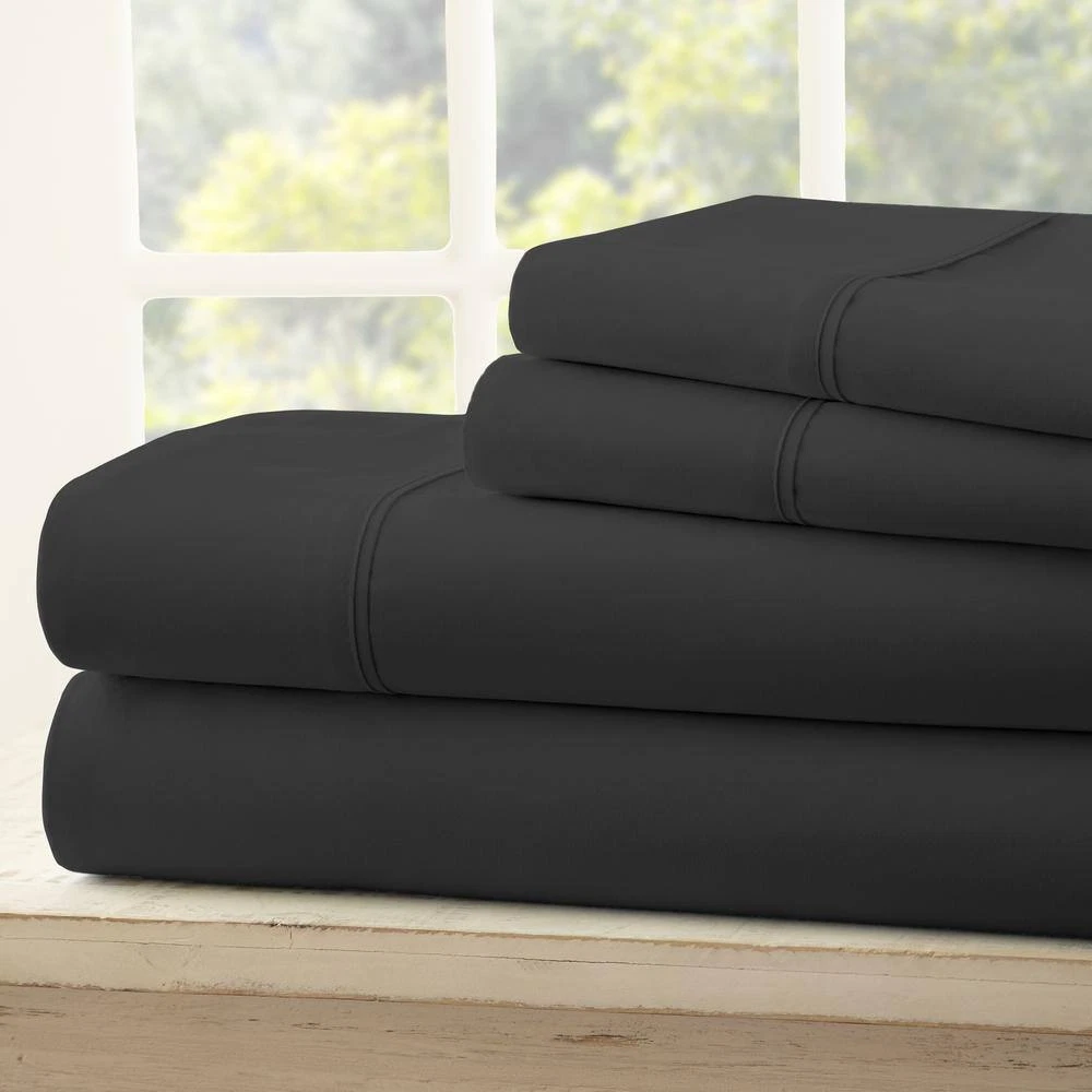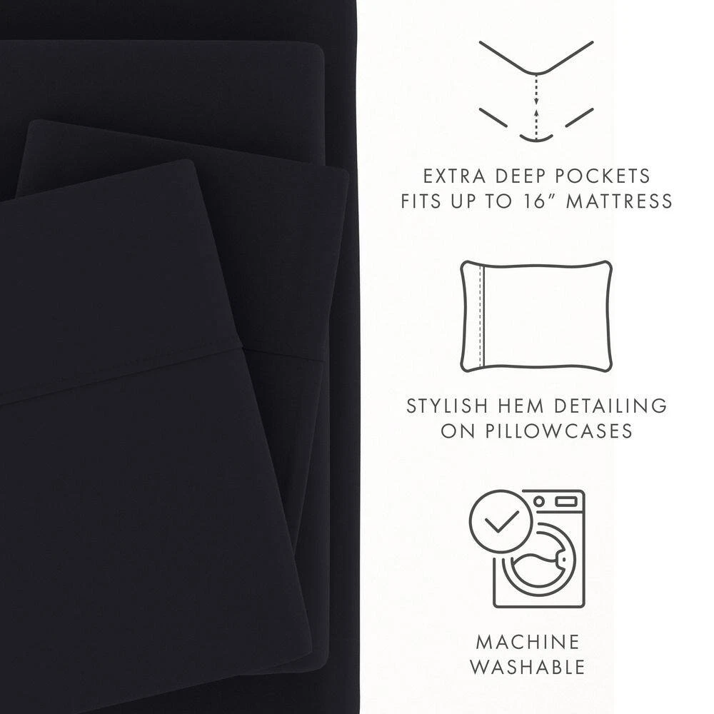 3-Piece Black Solid Microfiber Twin Sheet Set