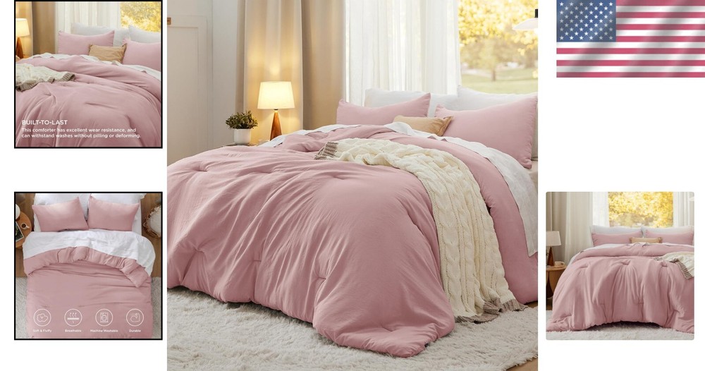 This bedding set is a dream come true—luxuriously soft, lightweight yet warm, and the perfect shade of gentle pink that adds a cozy elegance to any room. The comforter stays fluffy without overheating, making it ideal for all seasons. The quality stitching and premium fabric feel indulgent, transforming my bed into a cloud-like retreat. Easy to care for and fits perfectly on my California king mattress. Such a great buy for upgrading my sleep experience!