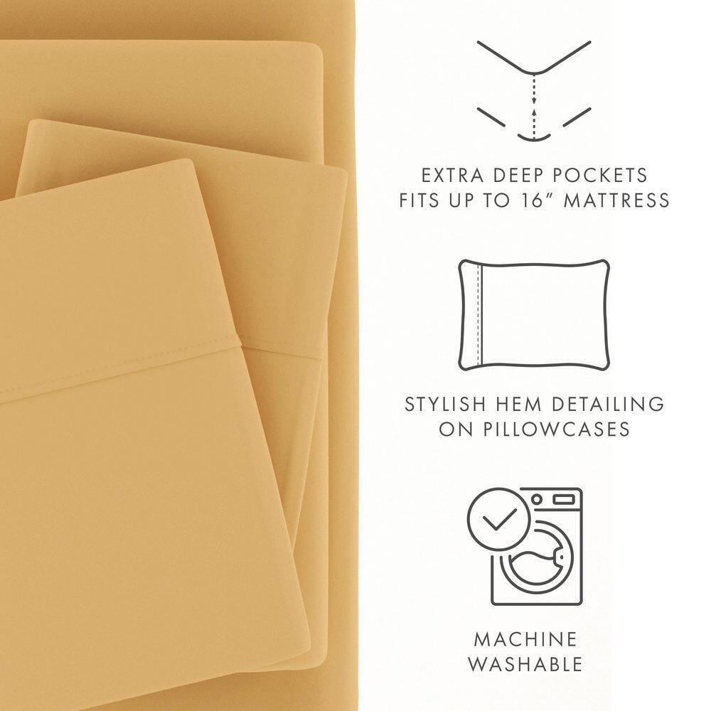 3-Piece Twin Gold Microfiber Sheet Set - Soft & Luxe