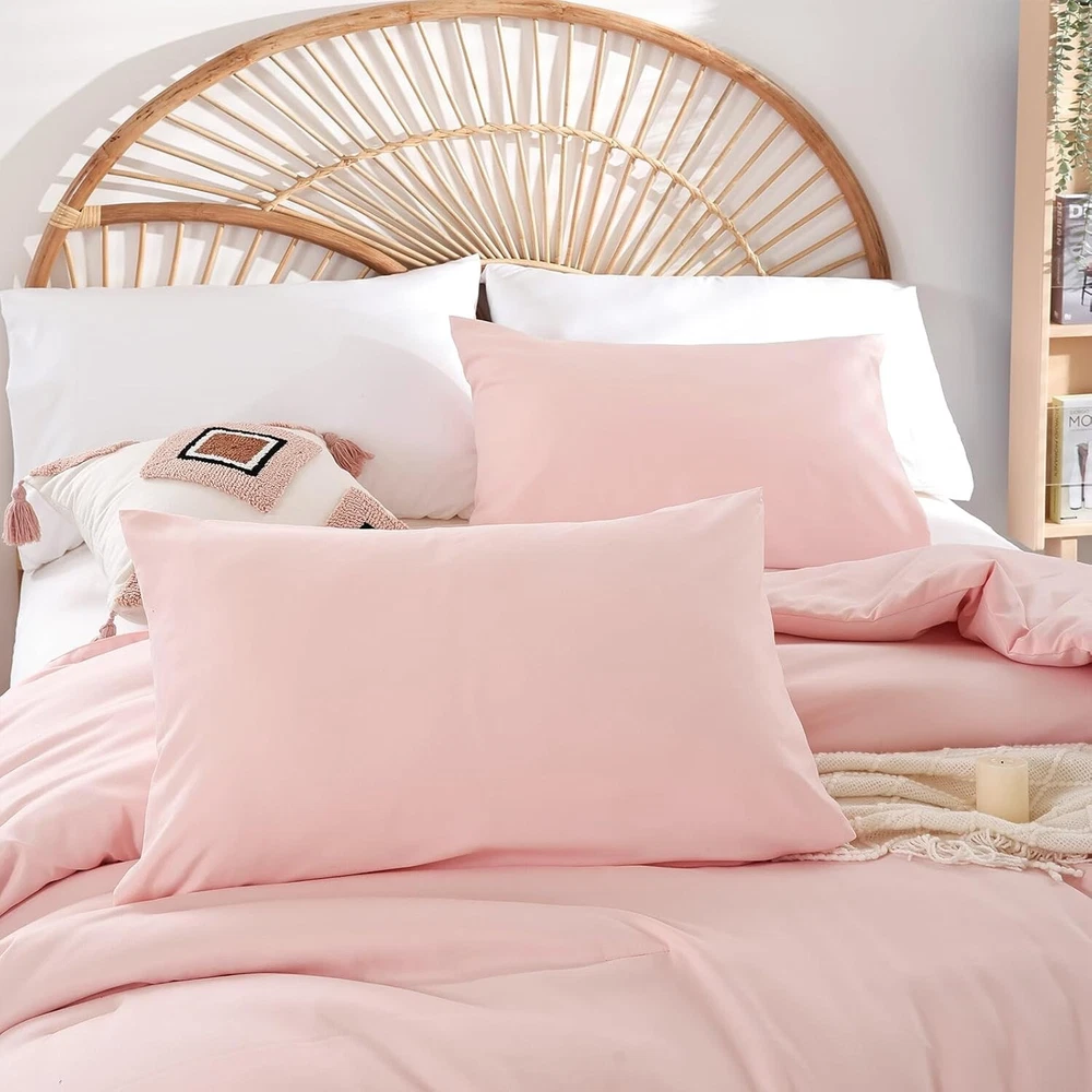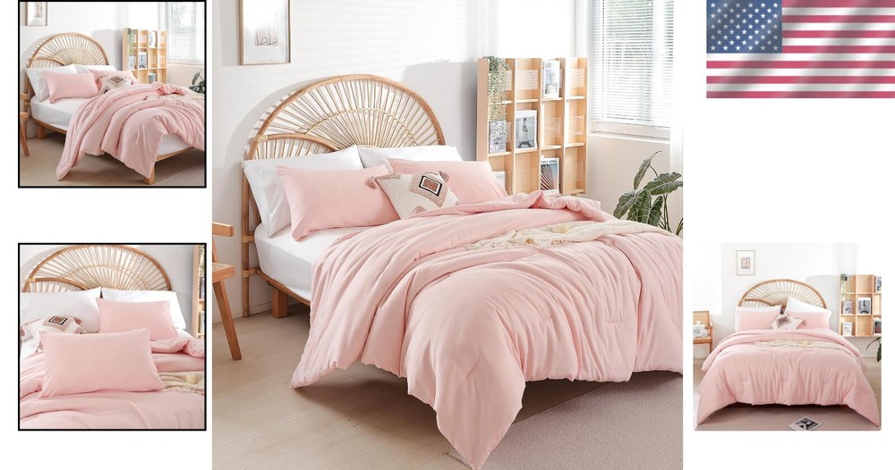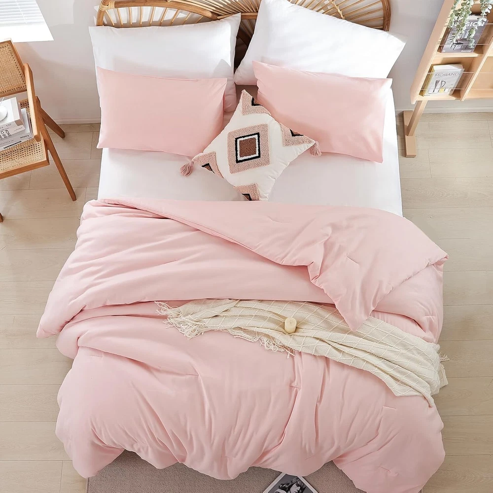 Absolutely love this comforter set! The light pink shade is so elegant and blends beautifully with any bedroom decor. The microfiber fabric is incredibly soft, cozy, and perfect for year-round comfort. It feels lightweight yet warm, and the quality is outstanding—no shedding or fading even after washes. The set includes everything you need for a stylish, put-together bed. Definitely worth it!