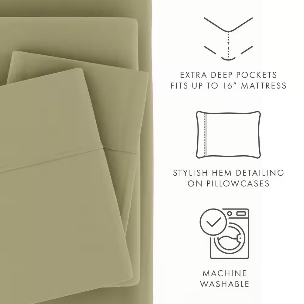 Sage Green 3-Piece Twin Microfiber Sheet Set Soft Breathable