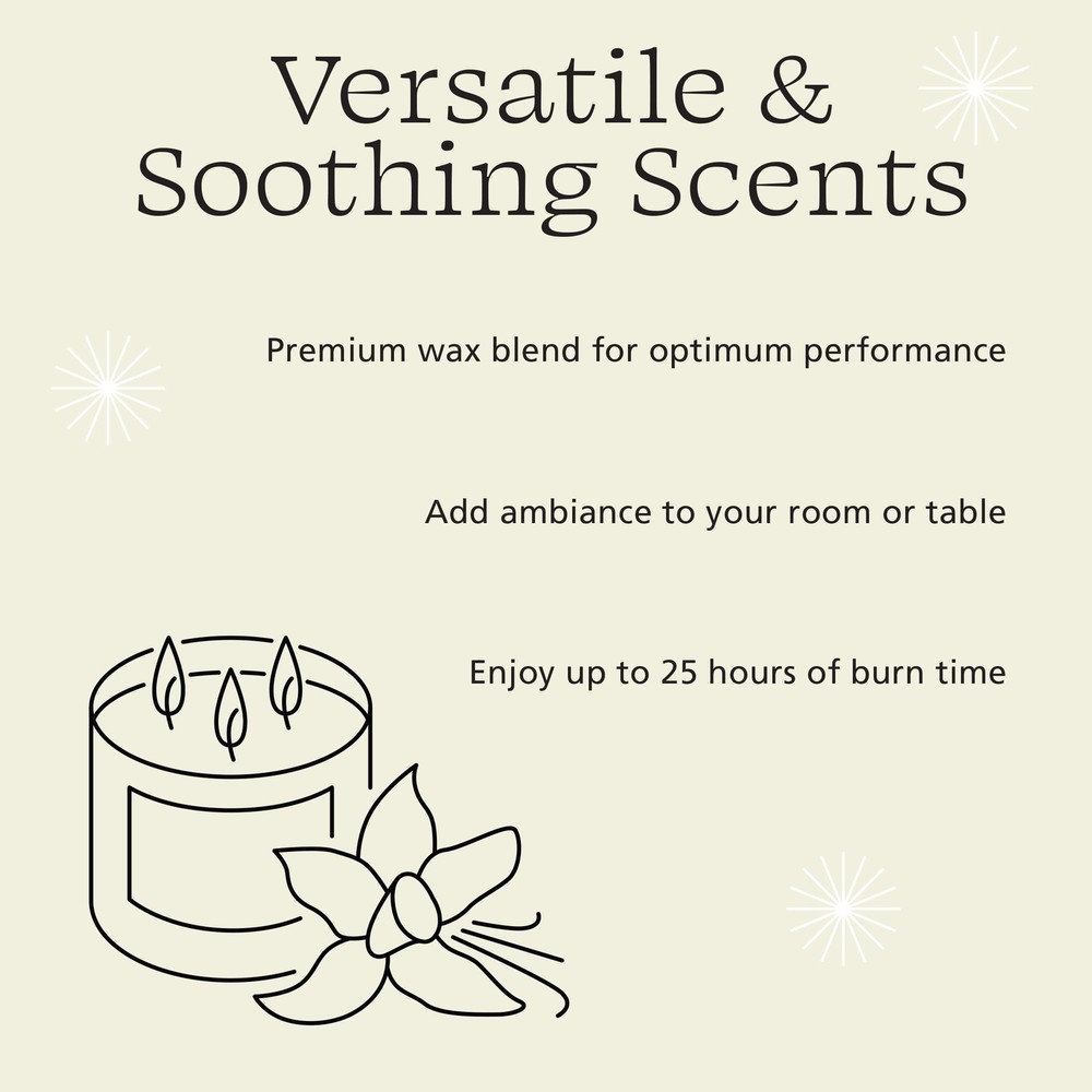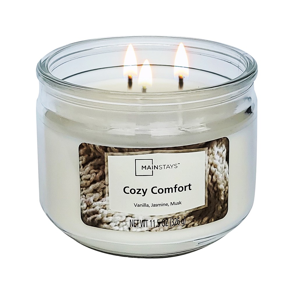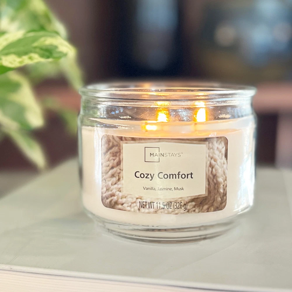Introduce a soothing aroma into your home with the Cozy Comfort Scented 3-Wick Glass Jar Candle. Infused with delightful fragrance notes of vanilla, jasmine, and musk, this scented candle creates a comforting atmosphere perfect for any setting. Designed for a clean and even burn, the three-wick glass candle jar illuminates your space while filling it with an inviting fragrance. Whether you're entertaining guests or enjoying a relaxing evening, the Cozy Comfort Candle is perfect for brightening your space with a beautiful and enticing seasonal aroma. Trim the candle wick periodically to promote even burning. Explore more scents from the Candles collection to find your perfect match.