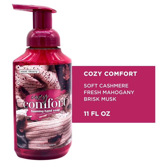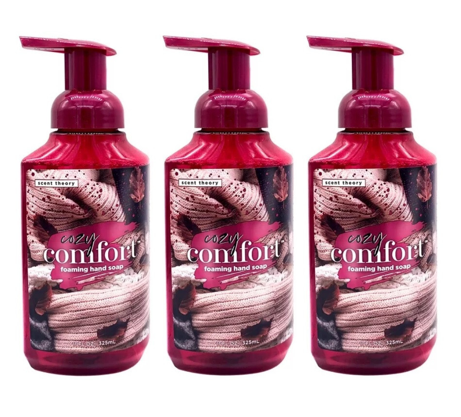 "Cozy Comfort" by Scent Theory SERIES / SIZE: 11 oz. (325 mL) TYPE: Foaming Hand Soap NO. OF BOTTLES: 3 Item Comment: Scent Theory hand soaps are crafted utilizing the power of fragrance. These fragrant soaps feature elegant formulas to pamper your skin and indulge your senses. Get clean, soft hands with Scent Theory luxurious foaming hand soaps! Please see all attached pictures for a photographic description and close-up detail. Fall and winter-inspired foaming hand wash Combines notes of Soft Cashmere, Fresh Mahogany & Brisk Musk Gentle, yet effective foaming soap is perfect for everyday use Leaves hands deliciously scented Work into a rich lather for at least 20 seconds and rinse well My feedback speaks for itself so BID WITH CONFIDENCE!!! Payment is to be made within 3 days from the close of the listing. NOTE: This listing is open to buyers/bidders with a shipping address in the USA. Additionally, bids by known exporting companies will be cancelled and their username will be placed on my block list per Ebay rules (sorry, no exceptions!). Shipping & Handling See listing. I ship in boxes not padded mailers unless noted. This item may be shipped well protected in a padded mailer. I believe your merchandise should arrive in the same condition as when it was shipped. I only ship to the address provided by Ebay, NO EXCEPTIONS! Insurance is the responsibility of the buyer! Insurance may be requested by the buyer at additional cost above the posted shipping & handling charge. RETURNS: My listings are thoroughly described with text and photos so the buyer knows what they are purchasing, therefore, returns will only be accepted if the item is not as described. Please contact me directly with any issues you may have with your purchase. Feedback: Please leave 5-star feedback if you are pleased with your purchase and I will certainly return the favor. If you have any dissatisfaction with your purchase, please contact me before leaving neutral or negative feedback. Please check out my other listings by clicking on the “See other items” link at the top of the page located under my user name. If you have questions about this listing or would like additional photos, drop me a line and I will get back to you as soon as humanly possible!