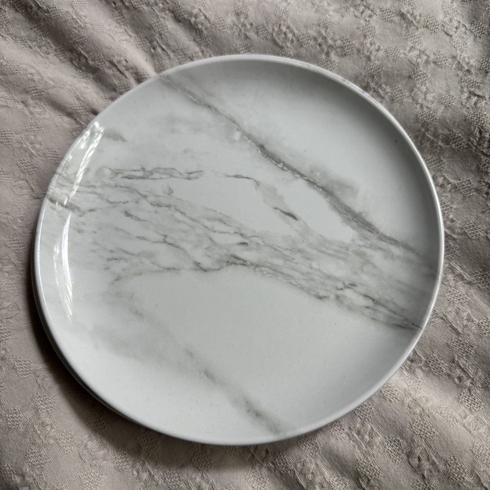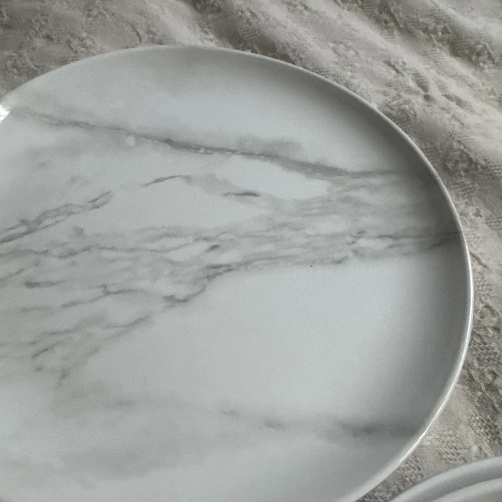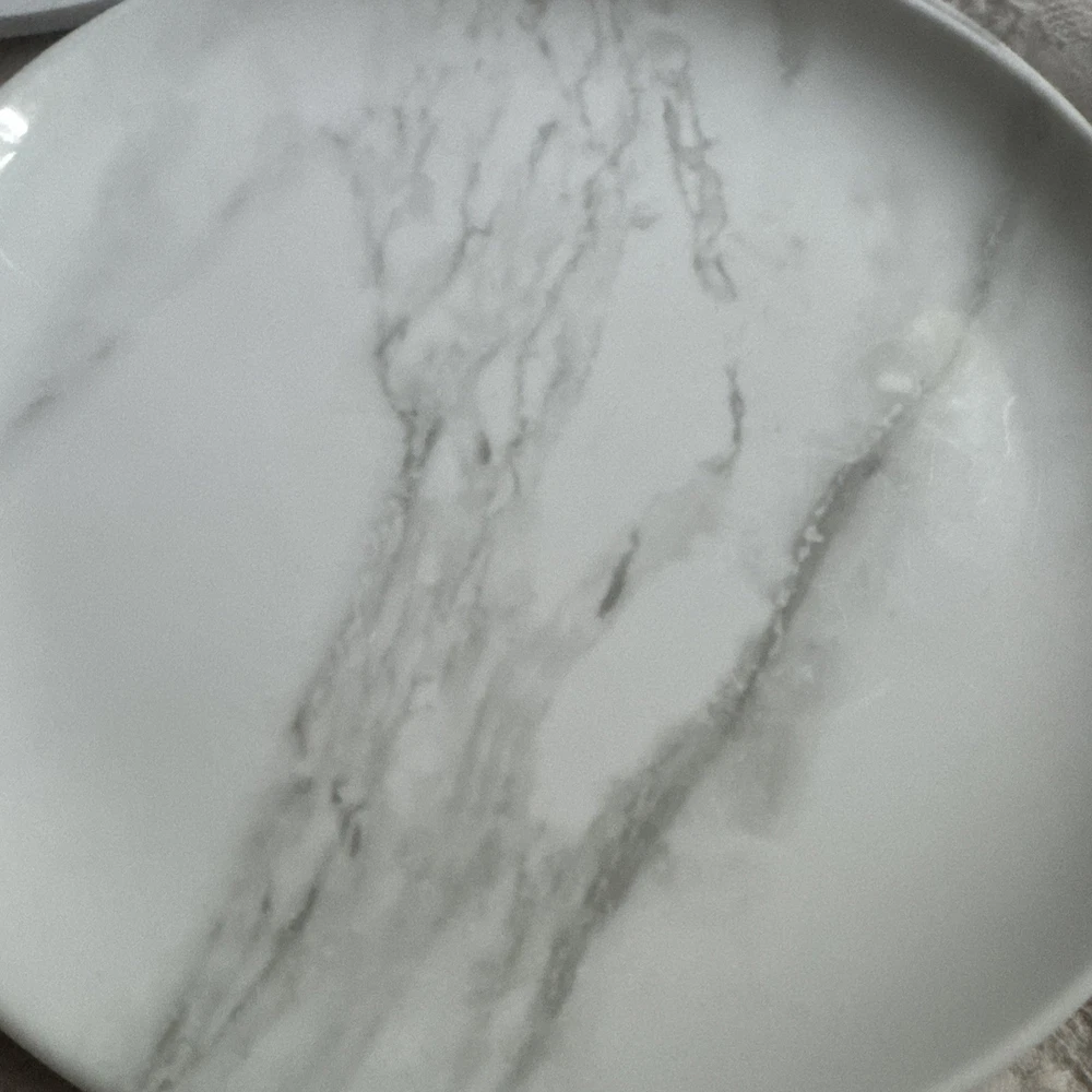 Love these marbled salad plates! The white and gray design is stylish yet neutral, perfect for any table setting. They're lightweight but sturdy, and the slight scratches don't really show. Great for outdoor dining since they're melamine—just remember no microwaving. A fantastic set for everyday use or entertaining!