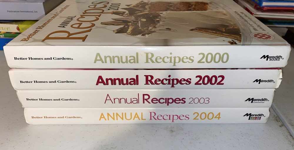 4 Better Homes & Gardens Annual Recipes 2000, ‘02, ‘03, ‘04 Hardcovers. All in very good to like-new condition.