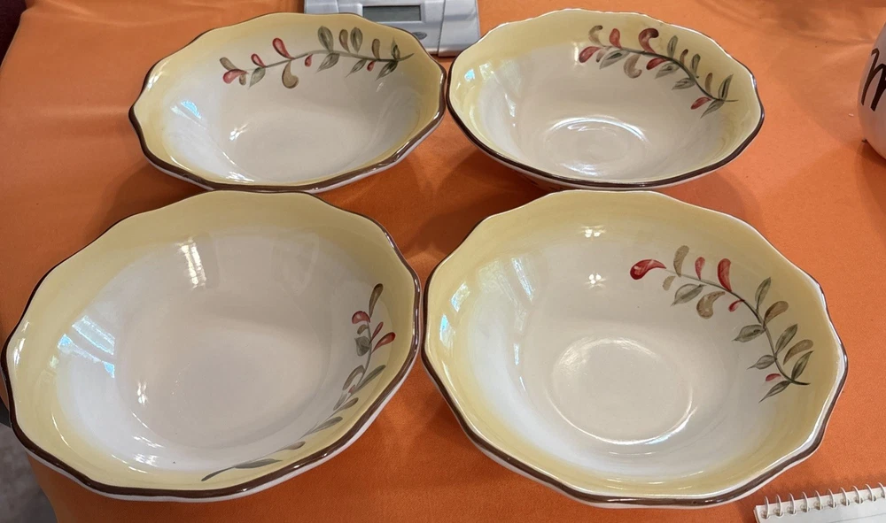 The product is a set of 4 Better Homes & Gardens Tuscan Retreat ceramic soup/cereal bowls, measuring 7.7 inches in diameter. The bowls feature a multicolor Tuscan Retreat pattern, adding a touch of elegance to your table setting. Made of ceramic, these bowls are perfect for serving both soup and cereal, making them a versatile and stylish addition to your kitchen.