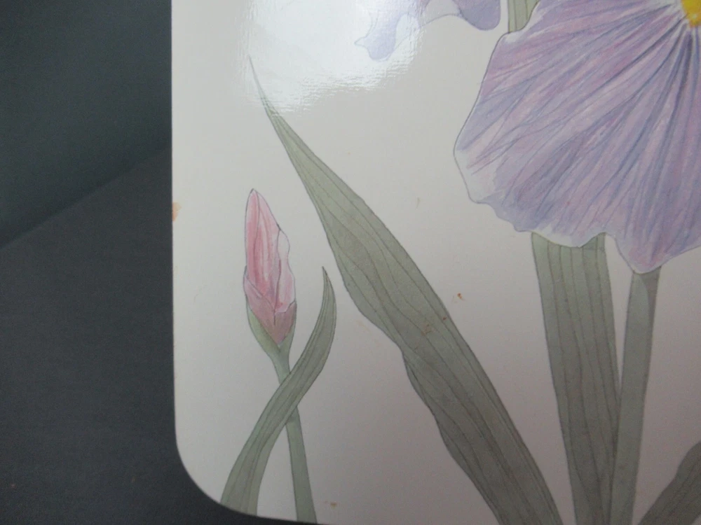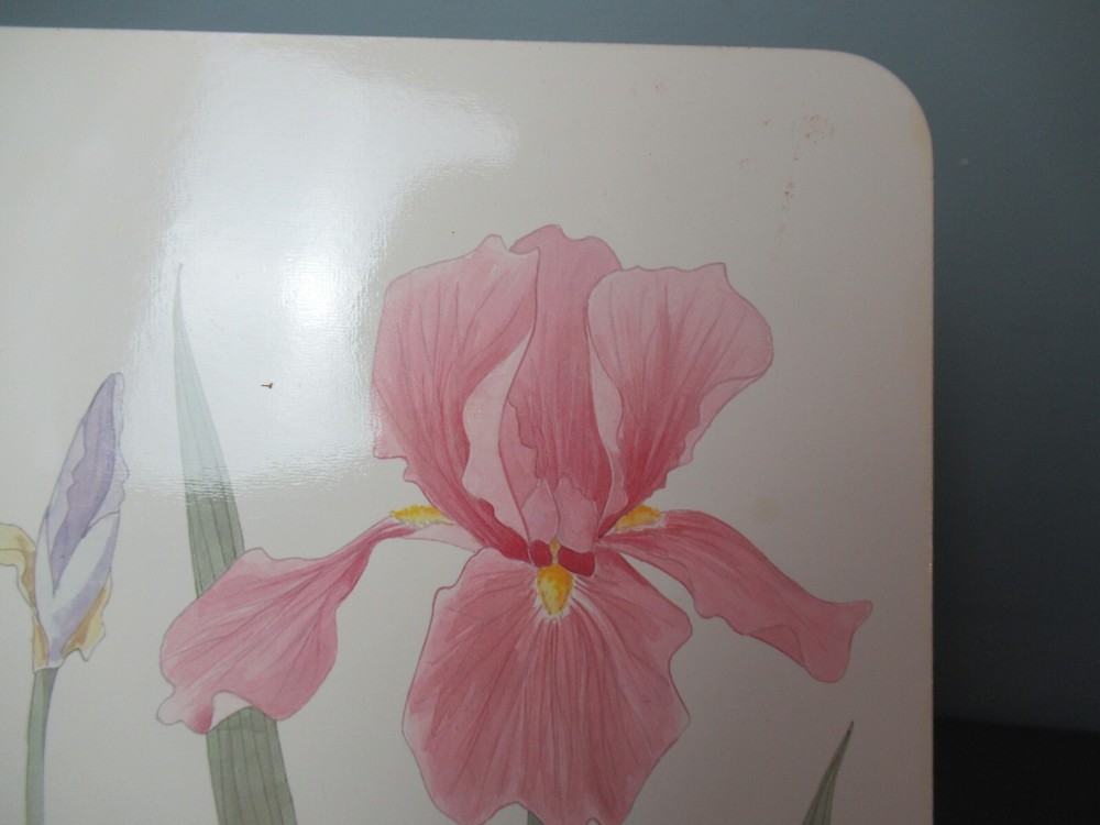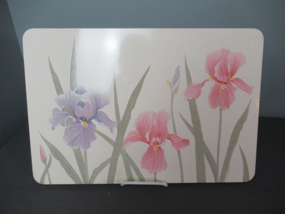 4 Cork Backed Placemats - Iris Flowers Artist... Lincoln Wakefield Pastel colors... green, yellow, purple and pink Marked... Design Imports - Italy Each - Approximately... 11 1/2" wide x 17" long In good condition Well made with great color and detail Ready to use or just display Please view the tray that matches these placemats in our store Purchased at Longwood Gardens We will be happy to combine items for shipping. Please feel free to keep shopping and we will send you an updated invoice with combine shipping rates. FROM A SMOKE FREE HOME WE DO OUR BEST TO DESCRIBE THE ITEMS AS ACCURATELY AS POSSIBLE SHIPPING... All shipping costs are the calculated rate as determined by the United States Post Office. We do not inflate shipping cost. We refund any overpaid shipping cost once the label is printed. We will ship your item within 3 business days after payment is received. We ship on business days only: Saturday, Sunday and Holidays are not considered business days. We have no control over how the US Post Office handles the package. You will receive a Delivery Confirmation by email so you can track your package. INTERNATIONAL PACKAGES … Import duties, taxes, and custom charges are not included in the item price or shipping cost. These charges are the buyer's responsibility. Please check with your country's customs office to determine what these additional costs will be prior to bidding or buying. Please be aware some international packages could take up to 6 weeks to receive.
