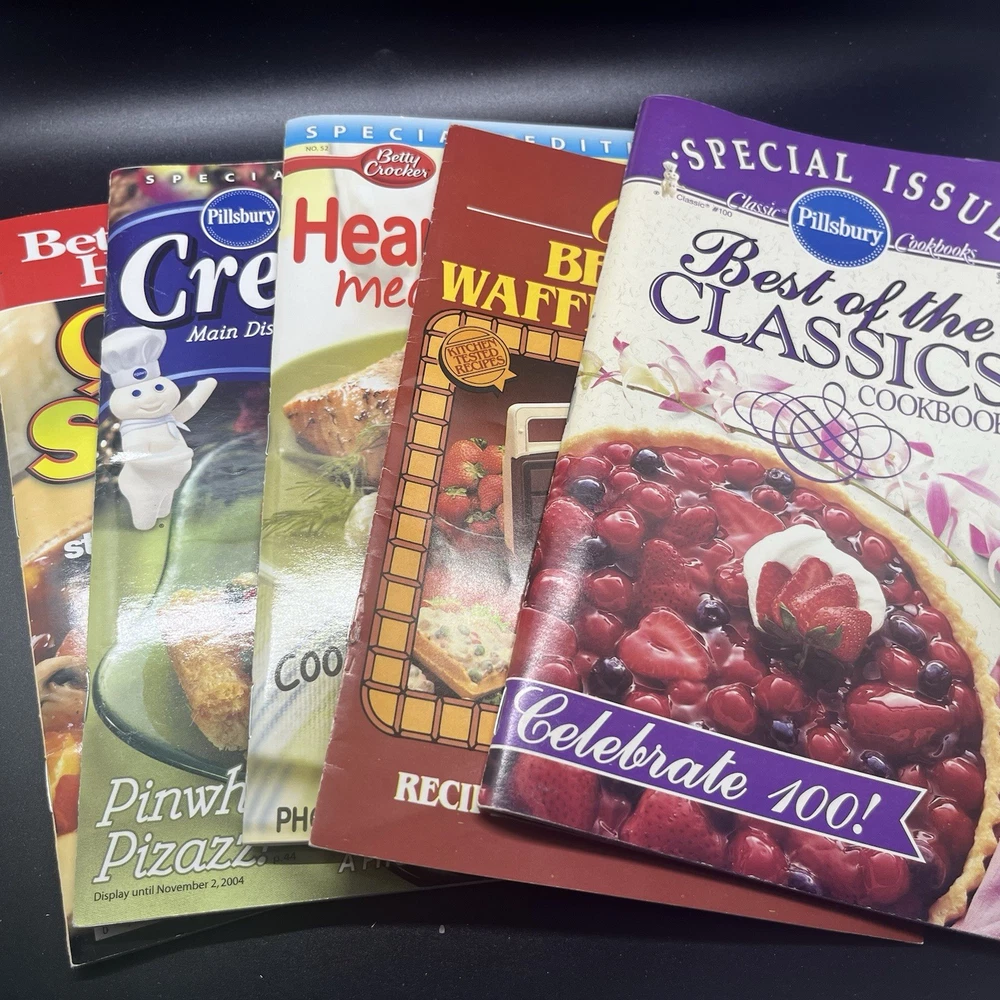 Dive into a world of culinary inspiration with this set of four beloved cooking magazines: Pillsbury Classic Cookbooks, Betty Crocker, Better Homes & Oster. Each publication offers a treasure trove of recipes, cooking tips, and dining ideas that cater to every meal and occasion. Proudly published in the year 2000, these magazines are a nod to the timeless art of cooking and entertaining. The collection comes in English language, featuring vivid illustrations that bring each dish to life. Whether you're a seasoned chef or just starting to explore the kitchen, these magazines are a valuable addition to your collection. Delve into the pages of these iconic publications and let your passion for cooking soar. Item has been stored in a smoke-free pet free home.