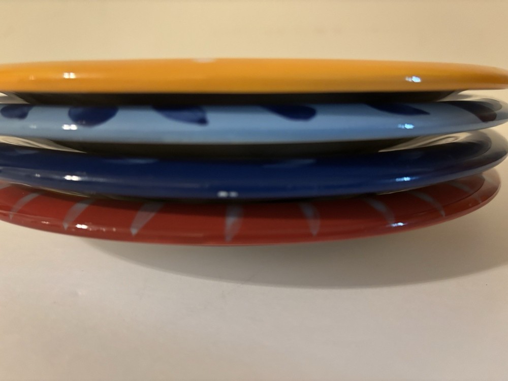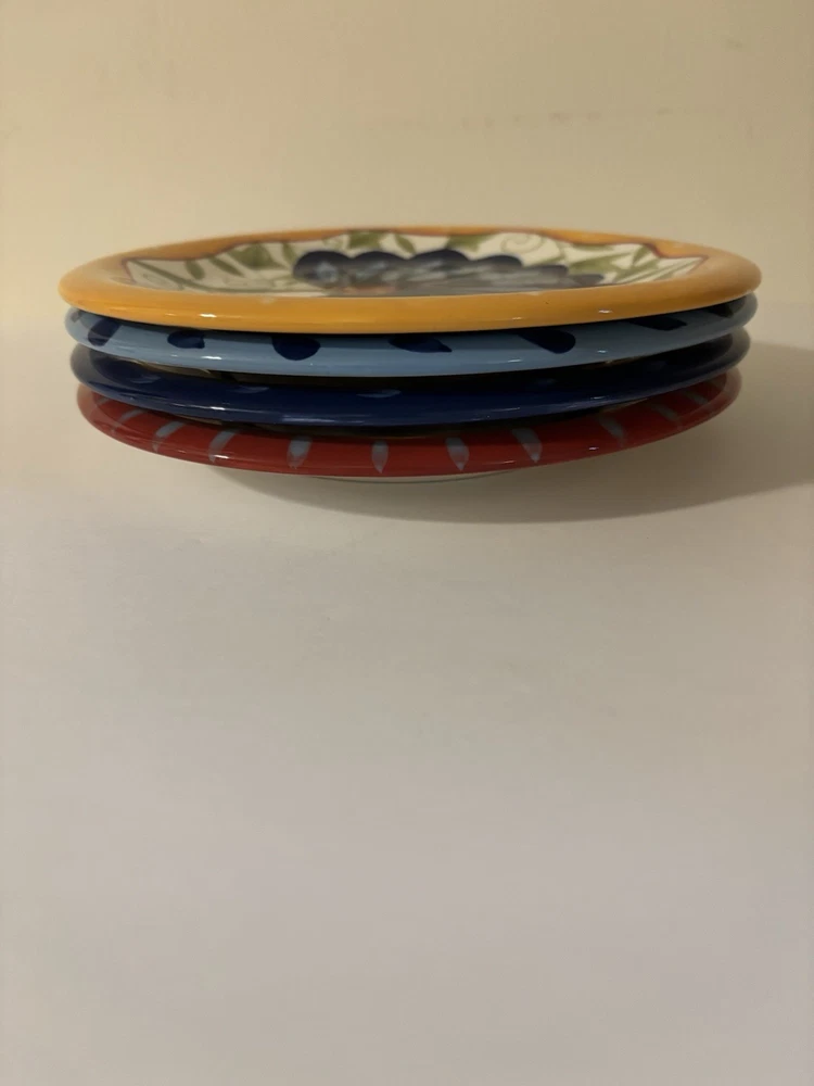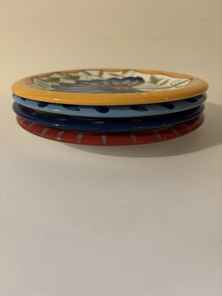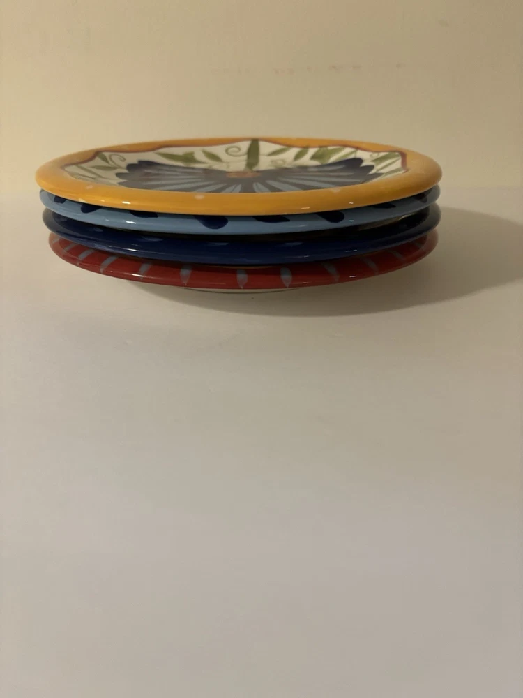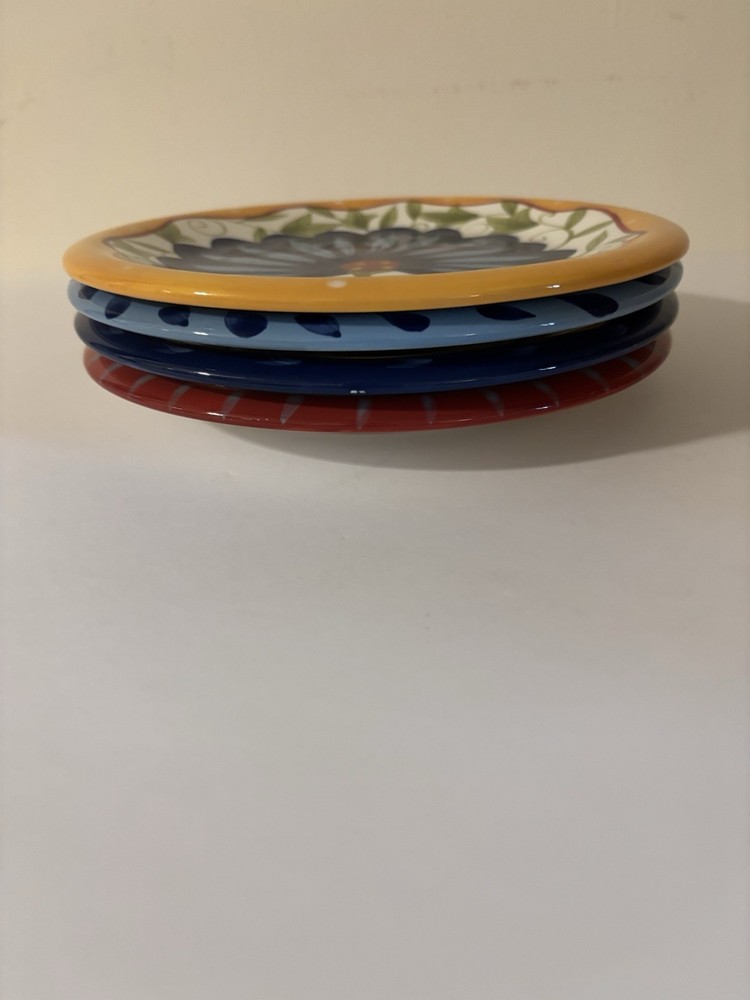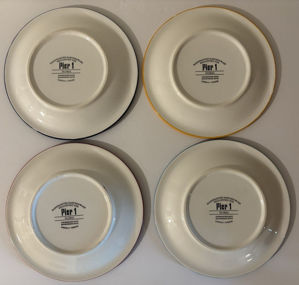 Set of 4 Hand Painted Pier One Earthenware Salad Plates with Floral Design 8.25" - For More Info See Details & Pics Ship USPS Ground Advantage
