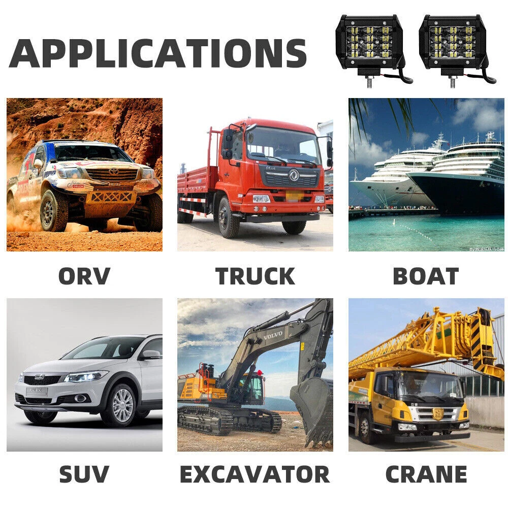 OZYEE.LIVING 4 Inch 60W LED Work Light Bar Spot Flood Pods fit for Jeep ATV with Wiring Kit LOCAL STOCK FAST SHIPPING BEST PRICE 60 DAYS RETURN AFTER SALES 4 Inch LED Work Light Bar Spot Flood Pods fit for Jeep ATV with Wiring Kit Specification: LED chip: 20 high intensity LEDs LED power: 60W Luminous flux: about 6000lm Working voltage: 10-60v DC Waterproof grade: IP 68 Light color: white Color temperature: White: 6000K Working temperature: - 45 ~ + 85 ° C Material: 6063 aluminum profile and plastic, aluminum bracket, PC lens Lens material: PC Beam: 20 degree point + 60 degree flood 50000 hours life Certification emission reduction t Description: CE / RoHS / protection level 68 Features: 100% brand new and high quality Ultra high intensity LED light and three row combination beam mode (spotlight and floodlight). Special design of aluminum alloy heat sink, service life up to 50000 hours. Equipped with mounting bracket and screw set, easy to install. It is easy to install on different types of vehicles and has a wide range of uses. High performance sealing, waterproof, dustproof, shockproof, waterproof rate IP68, explosion-proof. High quality LED chips produce powerful and ultra bright light to illuminate the dark road ahead. Provides a perfect balance between beam distance and coverage. It is popular both on road and off-road because the driver can see the road ahead and under the wheels. Installation: 1. Test the light to make sure it can work properly. (Red line is positive, black line is negative.) 2. Install the hex nuts on the bolts, And twist the spring meson . 3. Make the bolts go through the mounting holes And set into the spring meson, And then tighten the hex nut. 4. Connect the power line to the corresponding power connector. 5. Make sure the light is installed steadily, And then start the power. Application: It is used on any vehicles, car, for ATV, SUV, UTE, mining, boat, for Jeep, off-road, trailer, motor,bicycle,Excavators, truck, tractor and other heavy equipments. Package includes: 2/4 x 4inch combo beam Tri-Row Adjustable Mounting Brackets Screws Set 1 x wiring harness Payment Shipping Returns Contact Us Feedback We accept PayPal, Google Pay, VISA, Master Card, Amex. Credit card payment can also be made via PayPal E-check payment will be held until the payment is cleared. Item can only be shipped out when all payment is cleared. Please make sure your eBay address is correct before you pay. All the unpaid case will automatically opened after 4 days because the ebay final value charge of the transaction. We know you’re keen to receive your order as quickly as possible. Please note eBay’s delivery date estimate at the top of the listing. United States: 3-7 business days . Package will be sent out within 24 hours after the pament is cleared. We will not be responsible for any delivery failure due to unclear address. Delivery is not available on weekends, public holidays or after business hours. If you have any questions or issue about delivery, please contact us via eBay Messages and we will do our best to make sure you’re happy. Although rare, we understand that an order might need to be returned to us for a number of reasons. Please contact us before sending anything back to make sure the correct process is followed. We will accept returns or refund or exchange if they are unused and unmarked within 60 days . If you received wrong of defective products, please take photos and contact us to confirm. We must protect your interest as promsied. Remember to contact us via eBay message firstly. Don't open the return request. Office Opening Times: Monday to Friday-9:00AM-19:00PM .. We do our best to respond within 12-24 hours. If no response within 24 hours, please check the spam in your mail box. If you have any questions or issue about delivery, please contact us via eBay Messages and we will do our best to make sure you’re happy. Ask us about bulk discounts if you want to buy 3 or more. We apprecaite your business and strived to improve our customer service and our commitment to quality. We will leave a postive feedback immediately after payment is received. We appreciate a positive feedback as much as you do. Please do NOT leave negative or neutral feedback . If for some reason there is any issue with the purchase, please contact us prior to leaving feedback, and we will be glad to work with you to have it resolved.
