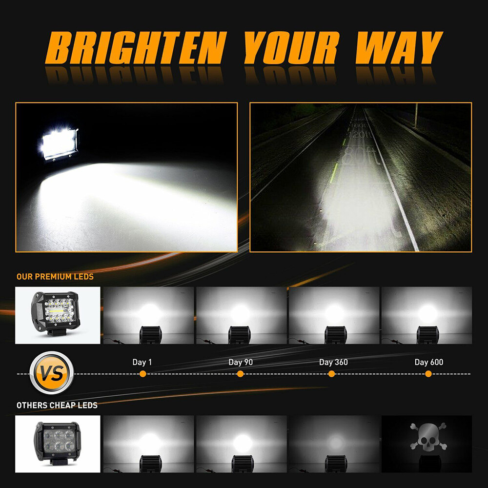 These LED work lights are a game-changer! Super bright with 6000lm output, perfect for off-roading or worksites. The build feels solid—aluminum housing and IP68 waterproofing mean they handle rough conditions. Easy to install with the included wiring kit, and they light up trails like daylight. Great value for the performance, plus fast shipping and solid customer support. Highly recommend!