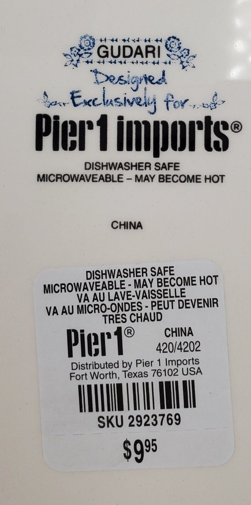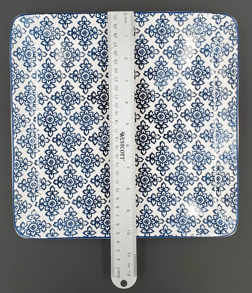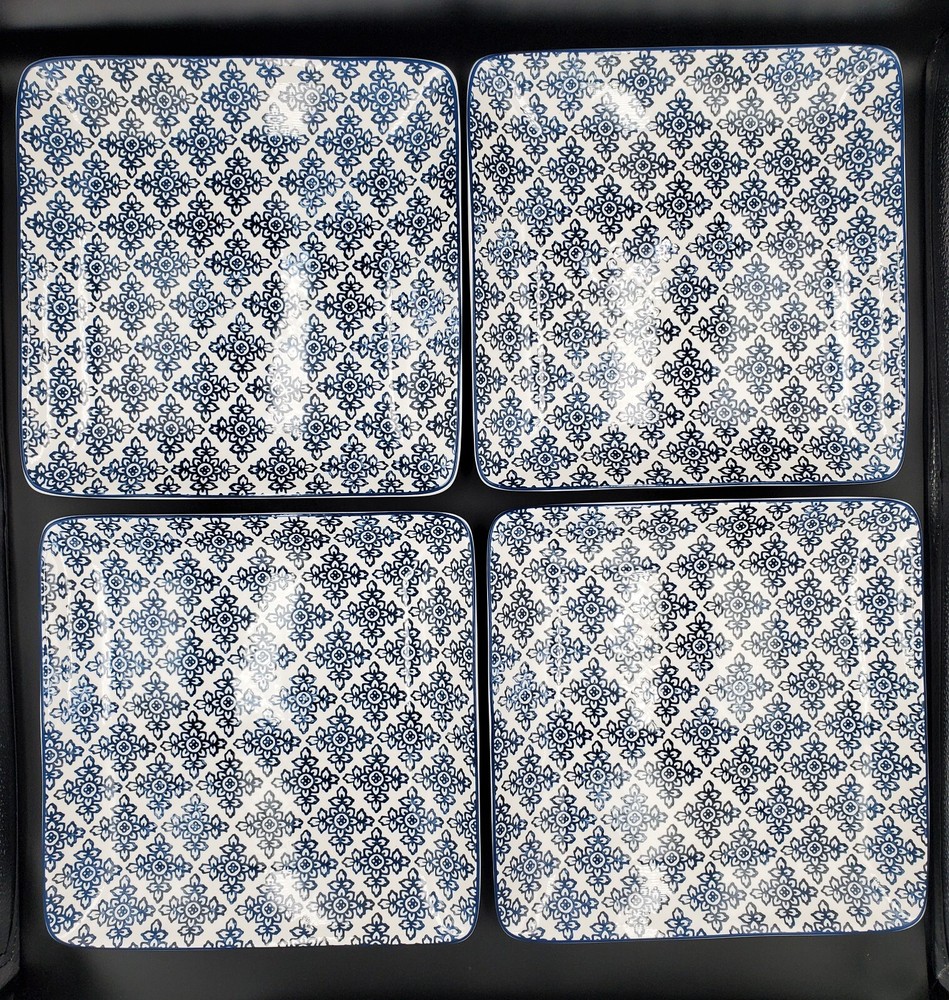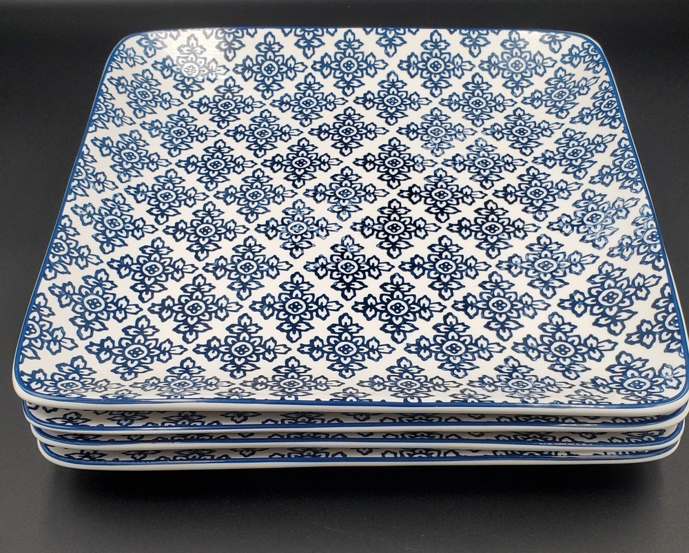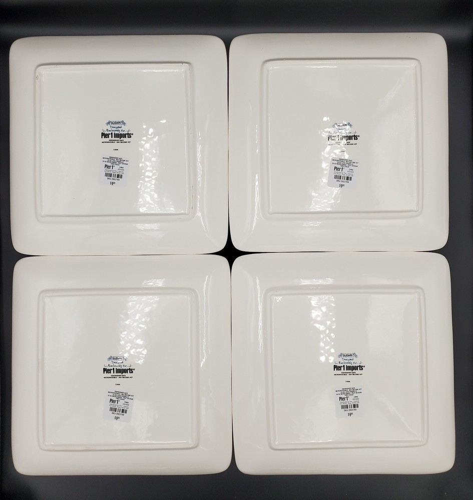 Elevate your dining experience with these stunning floral-patterned square dinner plates from Pier 1 Imports. The set includes four ironstone plates measuring 10 1/2 inches in width, perfect for any occasion and all farmhouse chic lovers. These plates are not only decorative, but also practical with features such as being microwave and dishwasher safe. The blue and white design is a timeless classic, sure to impress your guests. These original printed plates are not vintage but have an antique feel, making them a unique addition to your collection. Please see pictures as they are part of the description also. The matching salad plates are in my store.