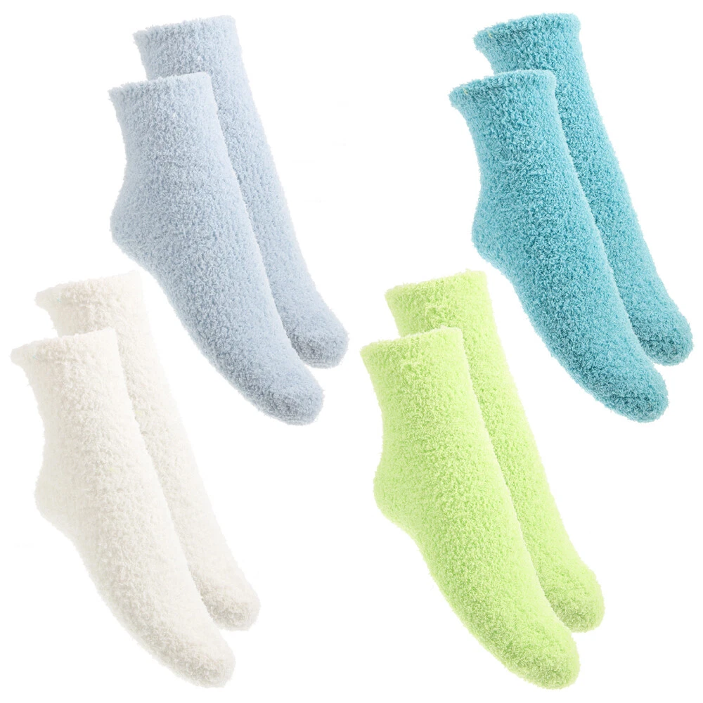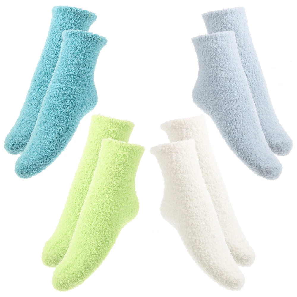 These coral fleece socks are incredibly cozy and perfect for keeping feet warm in winter! The soft, fuzzy material feels amazing, and the thermal lining adds extra comfort. Great value for four pairs—super comfortable for lounging or sleeping. A must-have for cold days!
