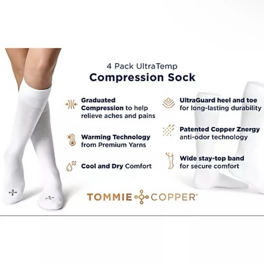 4 Pairs Of Tommie Copper Compression Socks Premium Fabric 100% Copper & Zinc Encapsulated Size : Large Color : Jade / Multicolor Condition : Brand New Material : Cotton, Spandex & Polyester. MSRP is $94.80 But We’re Only Asking For $25 We ship our items within 24hr of the item being sold so expect a fast delivery. We ship everyday except Sundays. Please message us with any questions you may have, Thank you.