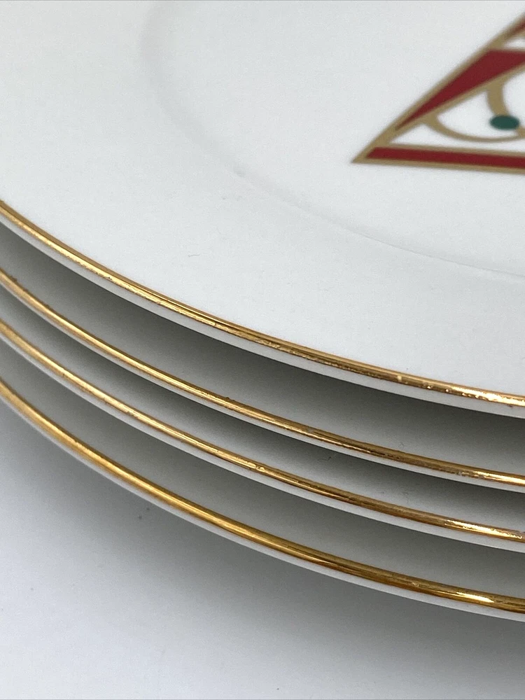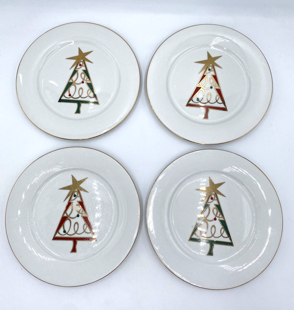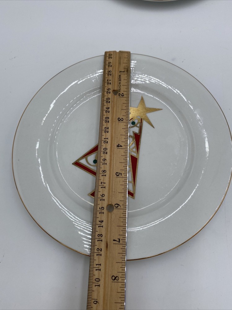 These festive Pier 1 holiday plates are absolutely charming! The green, red, and gold star design brings instant Christmas cheer to any table. They're in excellent condition with barely noticeable wear—perfect for dessert or salad. Love that they’ve been properly cleaned and cared for. A great find for seasonal entertaining!