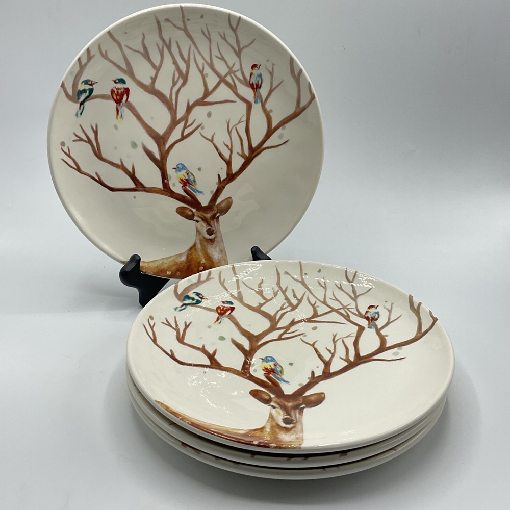 4 Pier 1 Imports Alexander Deer Salad Luncheon Plates Ironstone 8.75” There are some light scratches, no chips or cracks....